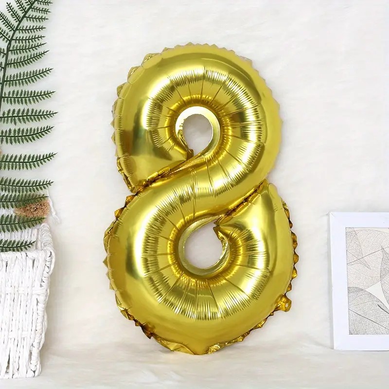 Balon din Folie Flippy, Cifra 8, 81 cm, Pentru Aer sau Heliu, Bulk, Auriu
