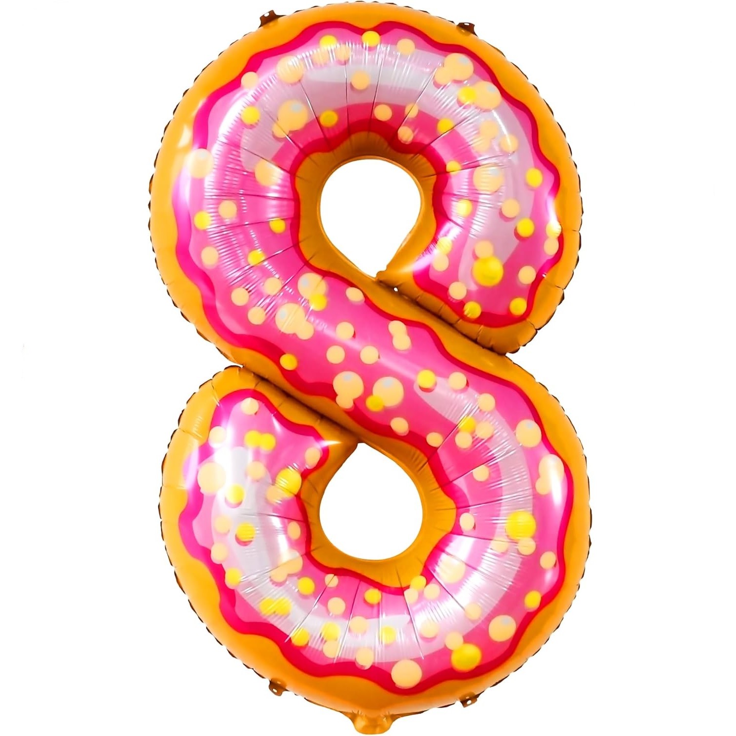 Balon din Folie Metalizata Flippy, Figurina Cifra, Imprimeu Gogosi, Tema Aniversare 100 cm, Ambalaj Individual, Pai inclus, Umflare cu Aer sau Heliu, Multicolor, Cifra 8