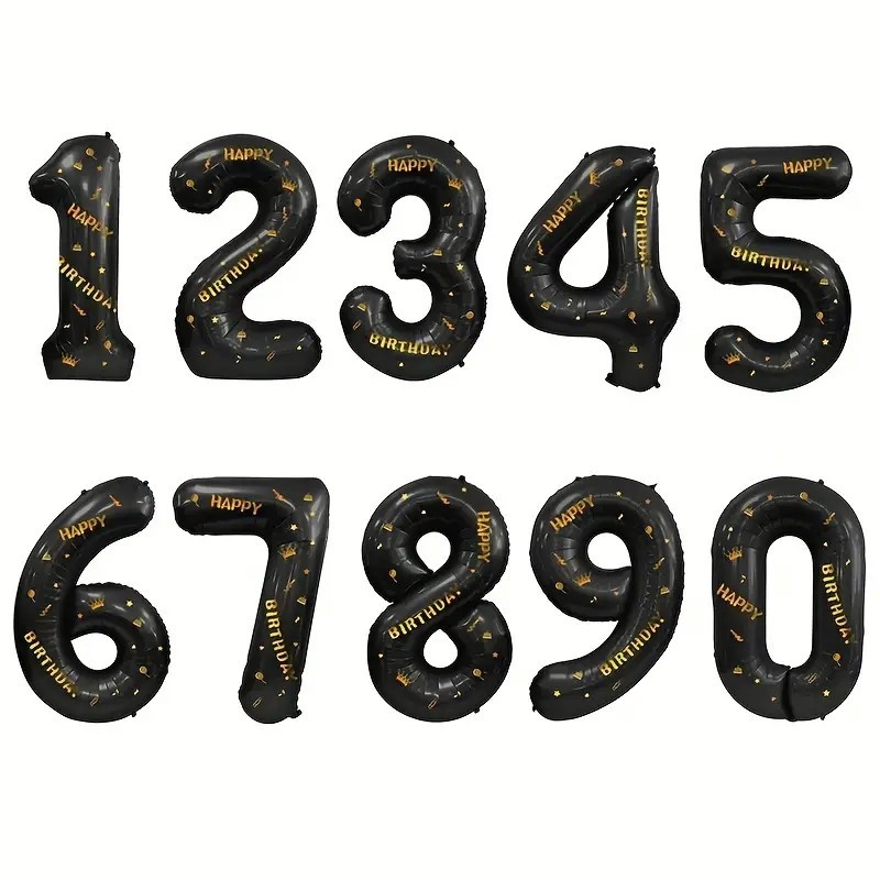 Balon din Folie Metalizata Flippy, Figurina Cifra, Scris Happy Birthday, Tema Aniversare 100 cm, Ambalaj Individual, Pai inclus, Umflare cu Aer sau Heliu, Negru, Cifra 3