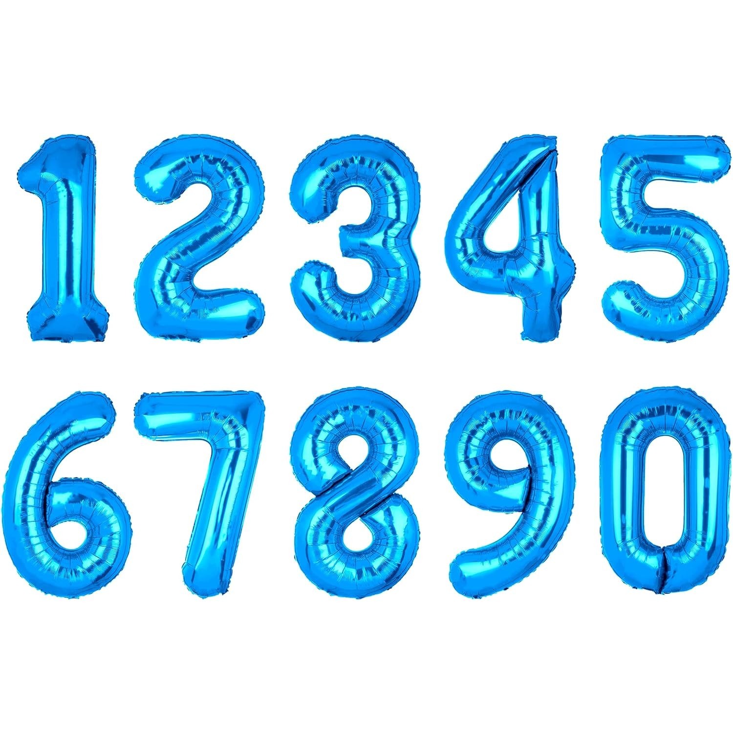 Balon din Folie Metalizata, Flippy, Figurina Cifra, Tema Aniversare 80 cm, Ambalaj Individual, Pai inclus, Umflare cu Aer sau Heliu, Albastru, Cifra 5