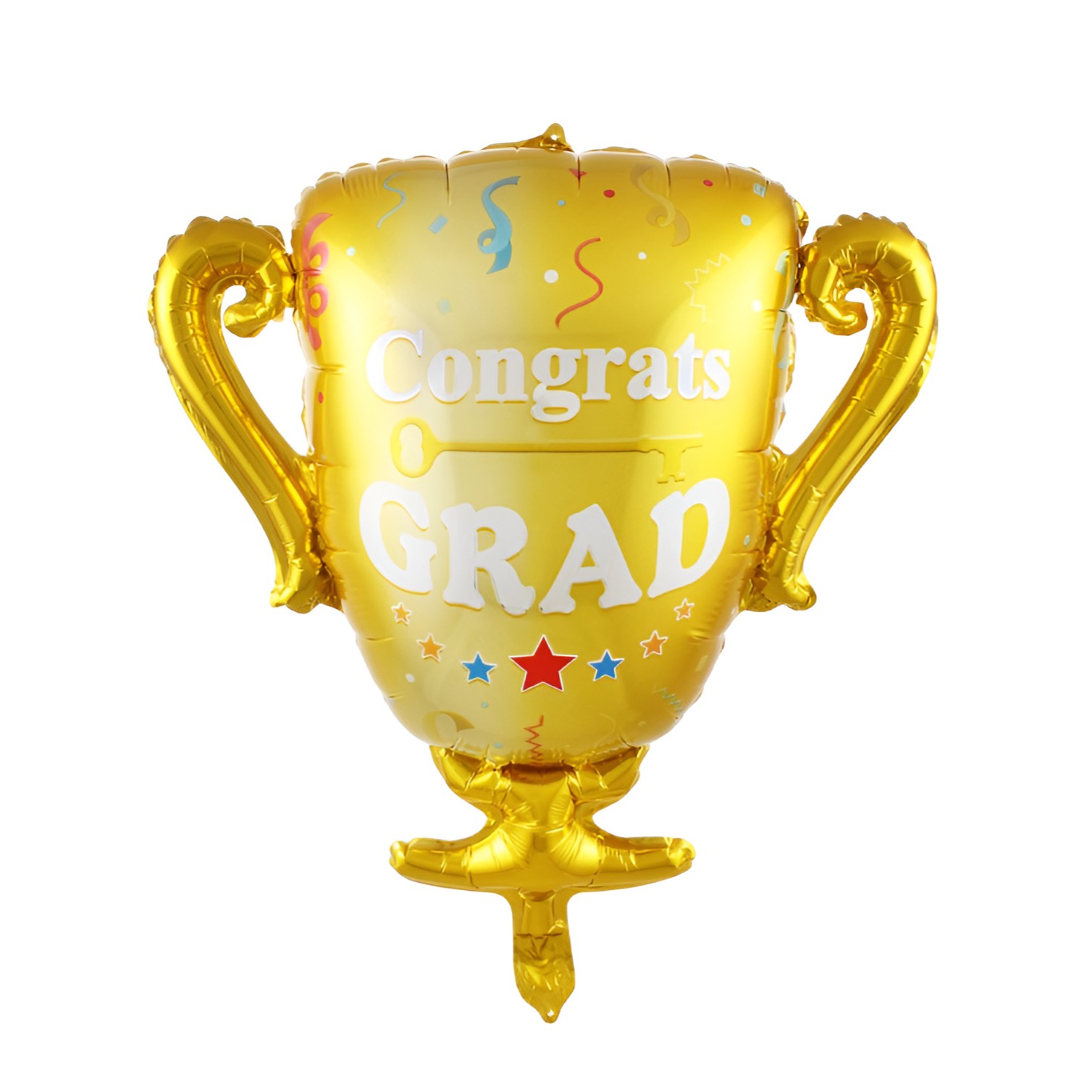 Balon din Folie Metalizata, Flippy, Figurina Cupa, Tema Absolvire, 65x72cm, Ambalaj Individual, Pai Inclus, Umflare cu Aer sau Heliu, Galben