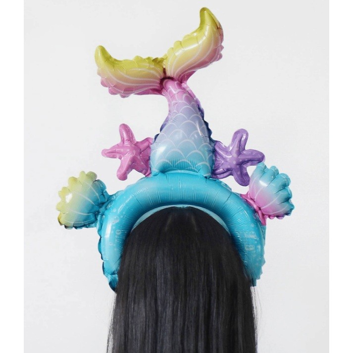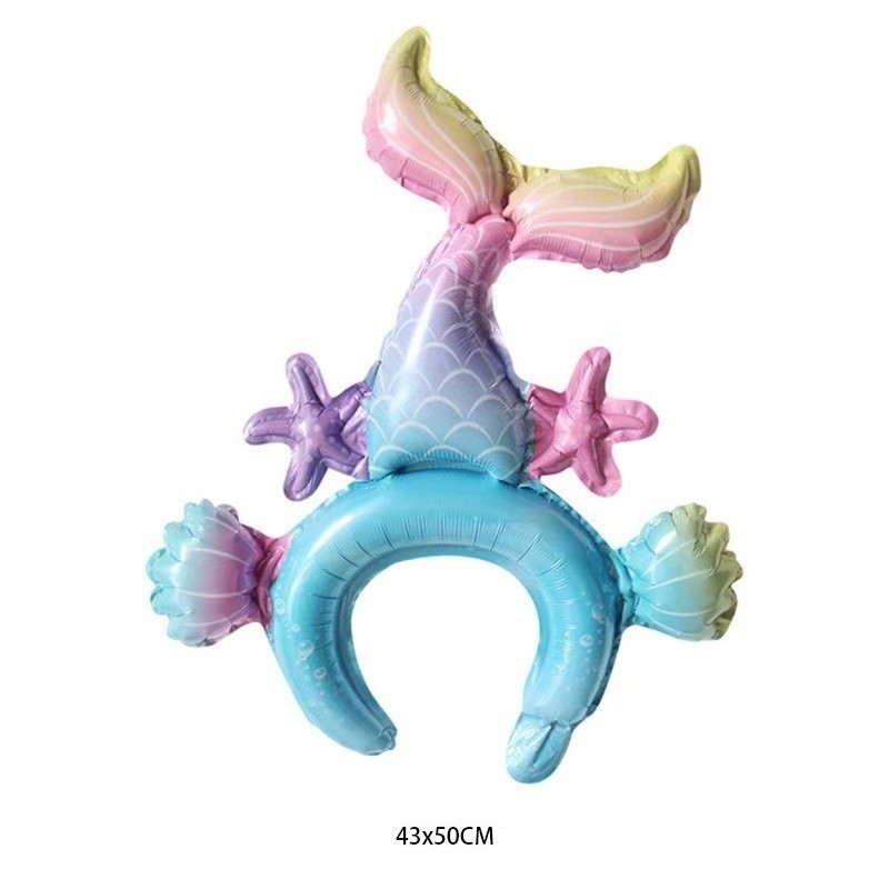 Balon din Folie Metalizata, Flippy, Tip Coronita, Model Sirena, Ambalaj Individual, Pai Inclus, Umflare cu Aer sau Heliu, 43 x 50 cm, Multicolor
