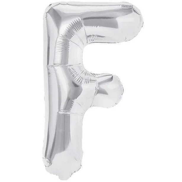 Balon Folie Metalizata Litera F, Flippy, 80 cm, Umflati cu Heliu sau Aer, Ambalaj Individual, Pai inclus, Argintiu