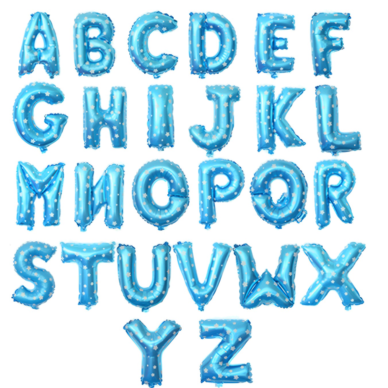 Balon Folie Metalizata Litera H, Flippy, 40 cm, Cu Imprimeu Stelute, Umflati cu Heliu sau Aer, Ambalaj Individual, Pai inclus, Albastru