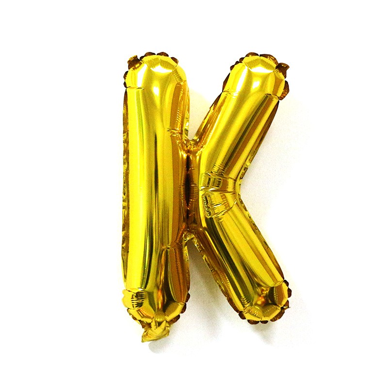 Balon Folie Metalizata Litera K, Flippy, 40 cm, Umflati cu Heliu sau Aer, Ambalaj Individual, Pai inclus, Auriu