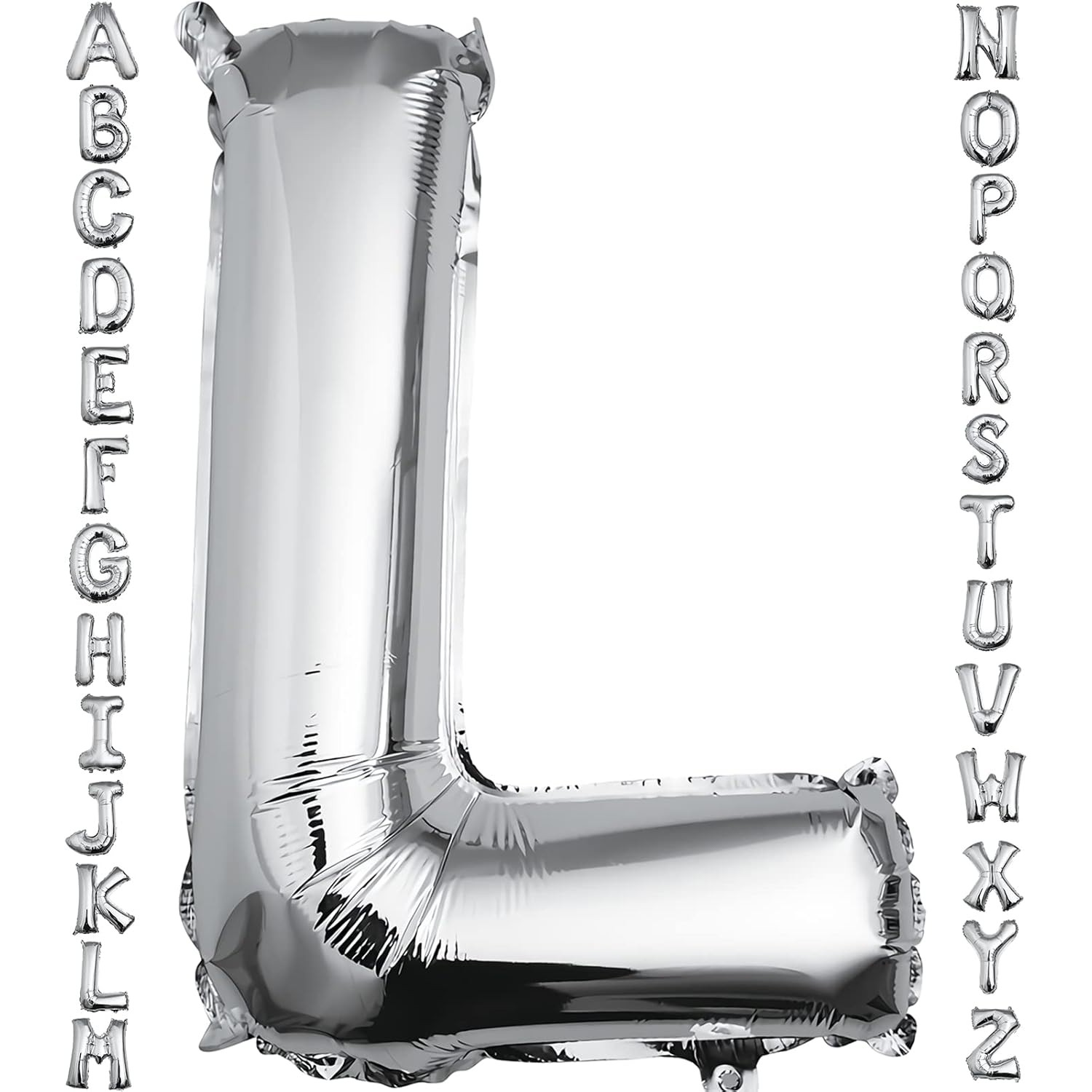 Balon Folie Metalizata Litera L, Flippy, 80 cm, Umflati cu Heliu sau Aer, Ambalaj Individual, Pai inclus, Argintiu