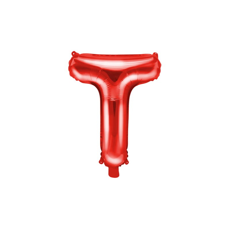 Balon Folie Metalizata Litera T, Flippy, 40 cm, Umflati cu Heliu sau Aer, Ambalaj Individual, Pai inclus, Rosu