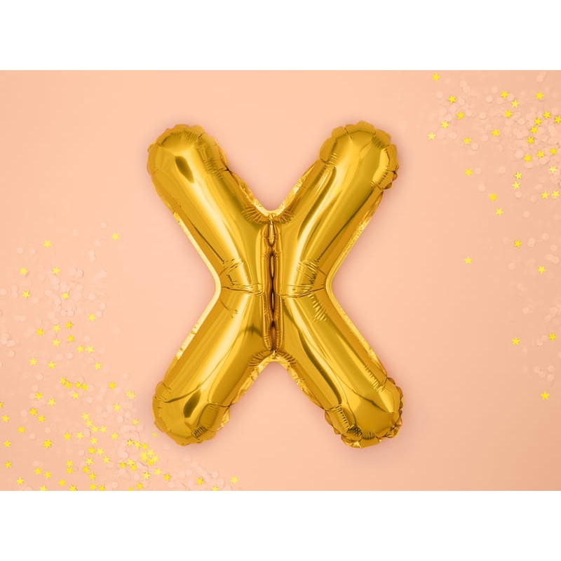 Balon Folie Metalizata Litera X, Flippy, 40 cm, Umflati cu Heliu sau Aer, Ambalaj Individual, Pai inclus, Auriu