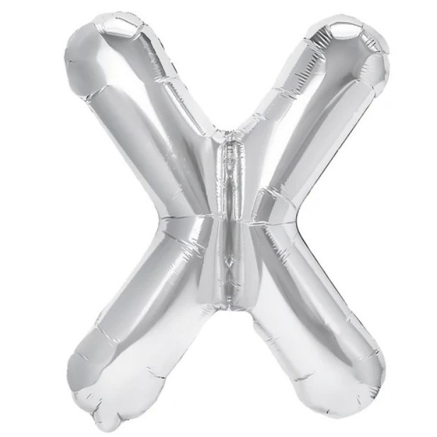 Balon Folie Metalizata Litera X, Flippy, 80 cm, Umflati cu Heliu sau Aer, Ambalaj Individual, Pai inclus, Argintiu