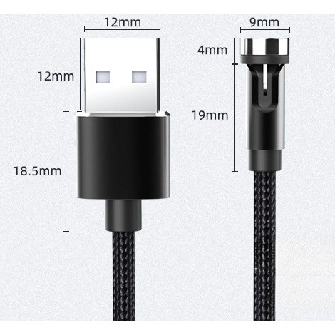 Cablu de incarcare magnetic 3 in 1 360 grade + 180 grade, 2 m, micro, type C, iPhone, 5 V, 2.1 A, Negru