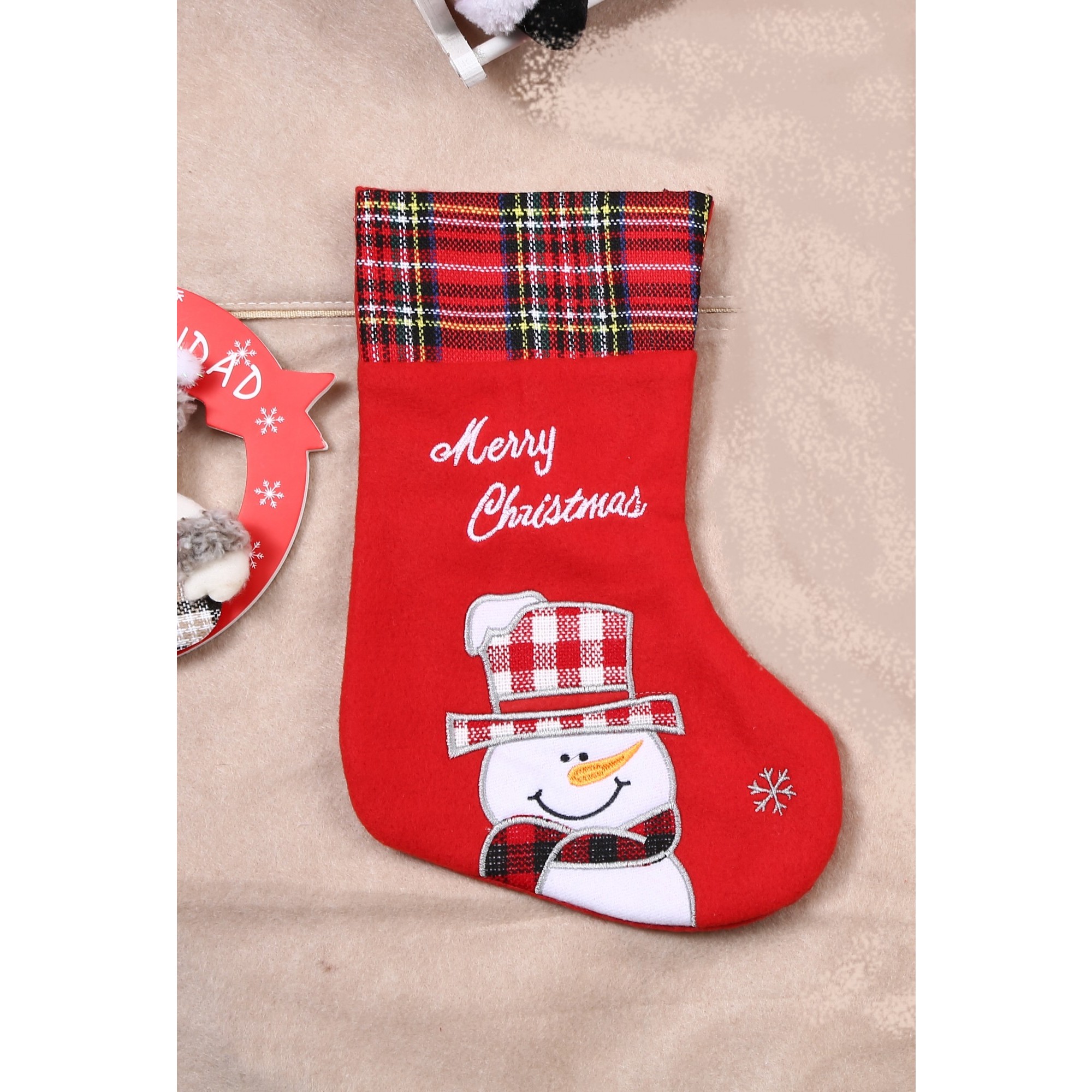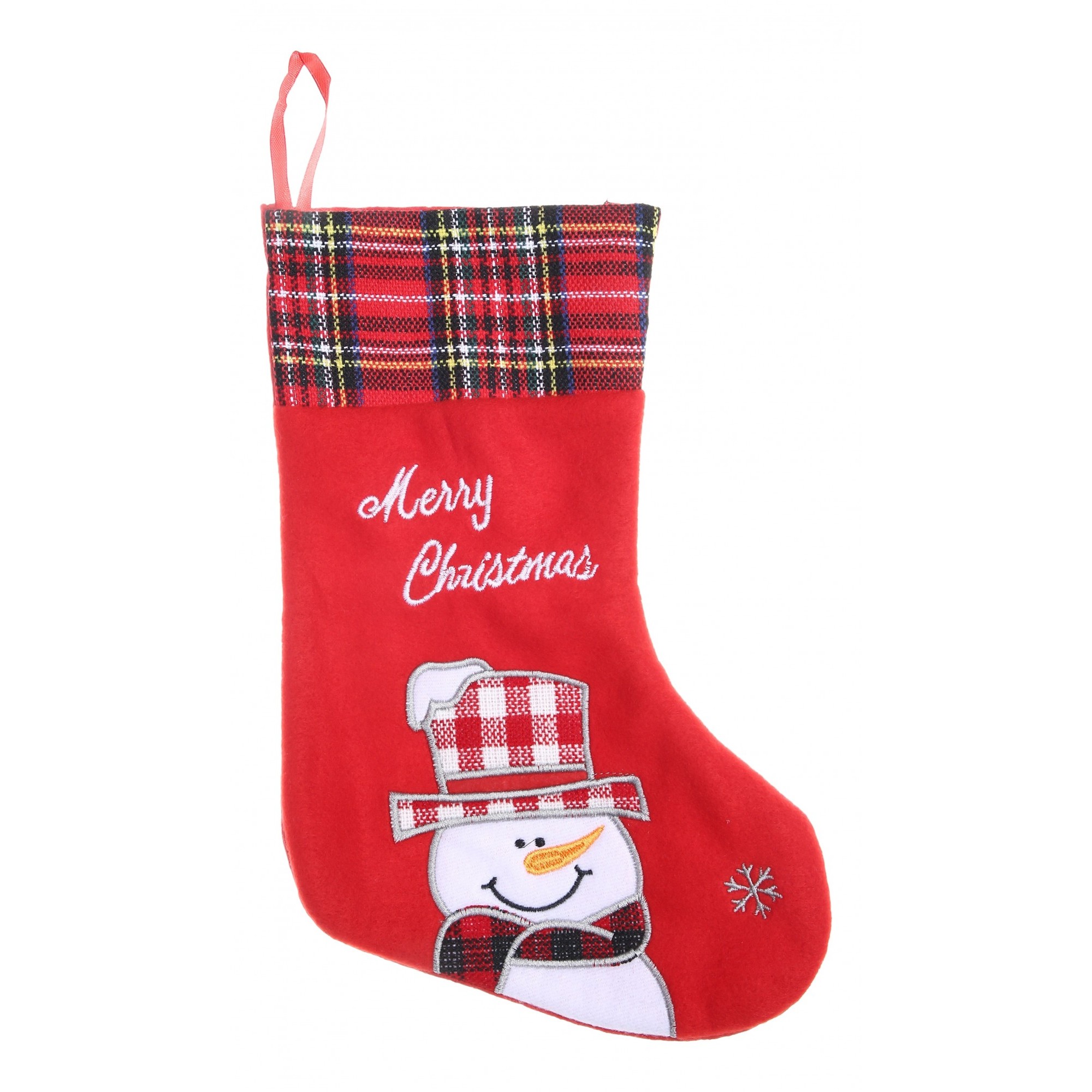 Cantitate Ciorap Cadouri, culoare rosie, imprimeu om de zapada,marimea 15x30 cm,
