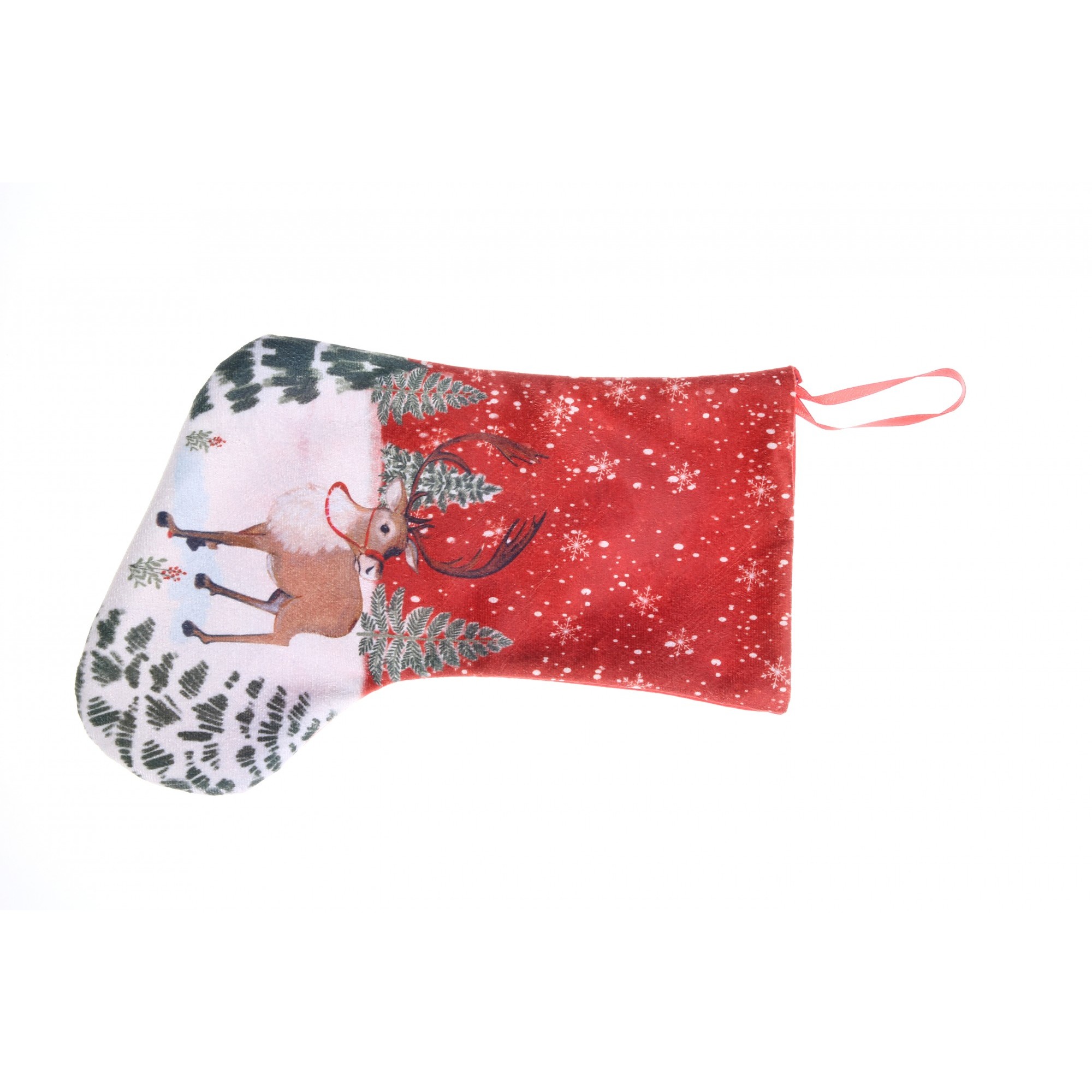 Ciorap Cadouri, culoare rosie, imprimeu ren, marimea 15×30 cm, Flippy