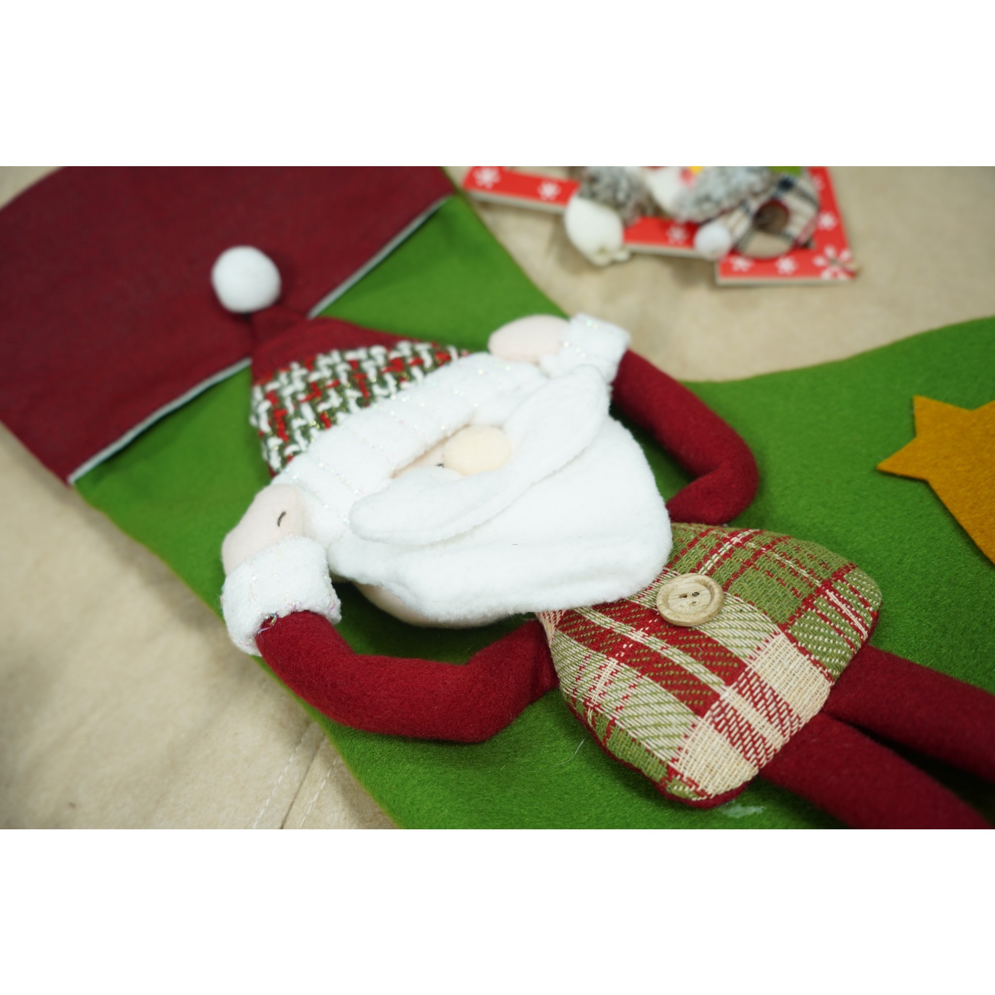 Ciorap Cadouri, Flippy,cu model Mos Craciun,verde, marimea 20×40 cm, textil, interior