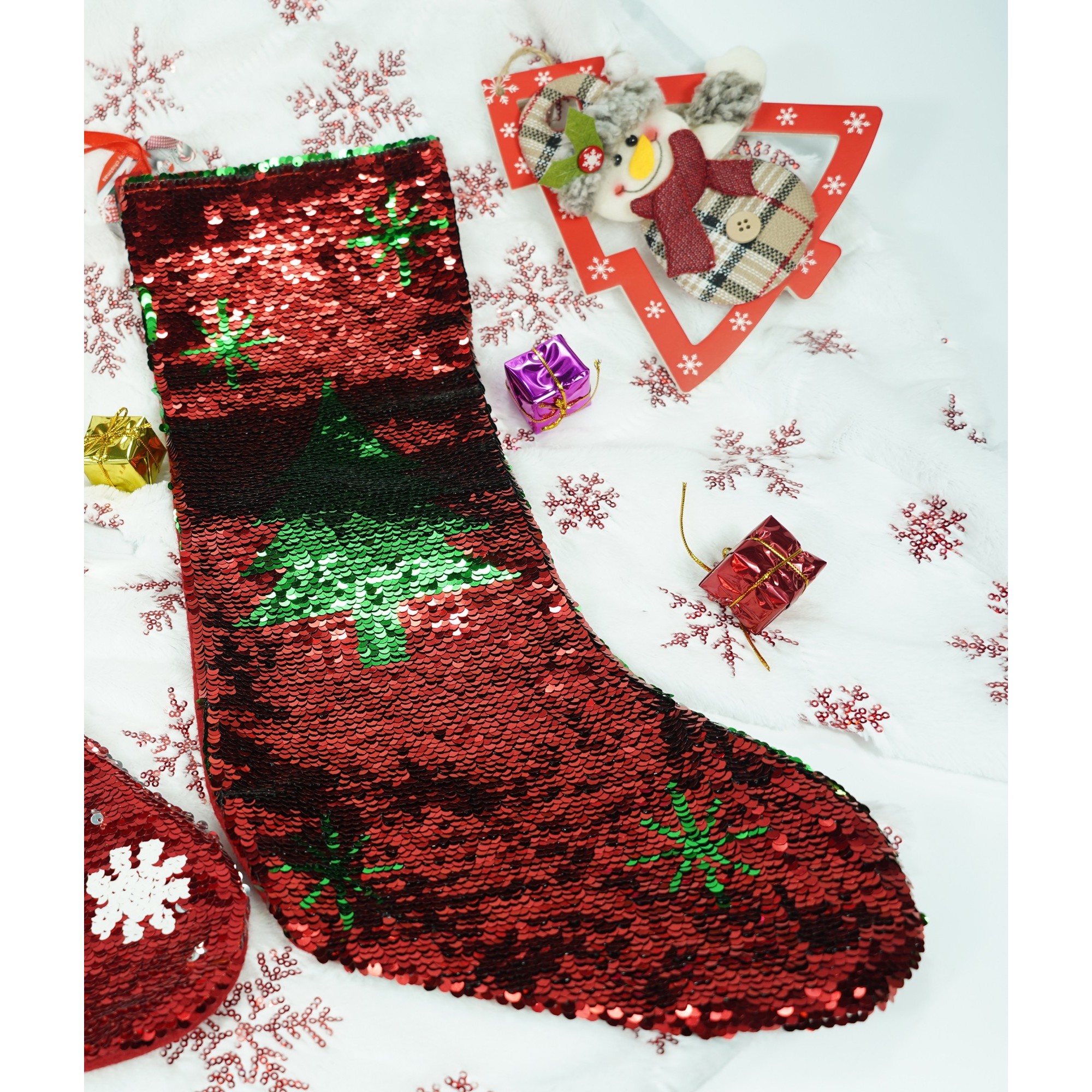 Ciorap Cadouri,Flippy,strasuri,cu model brad,rosu, marimea 20×45 cm, textil, interior