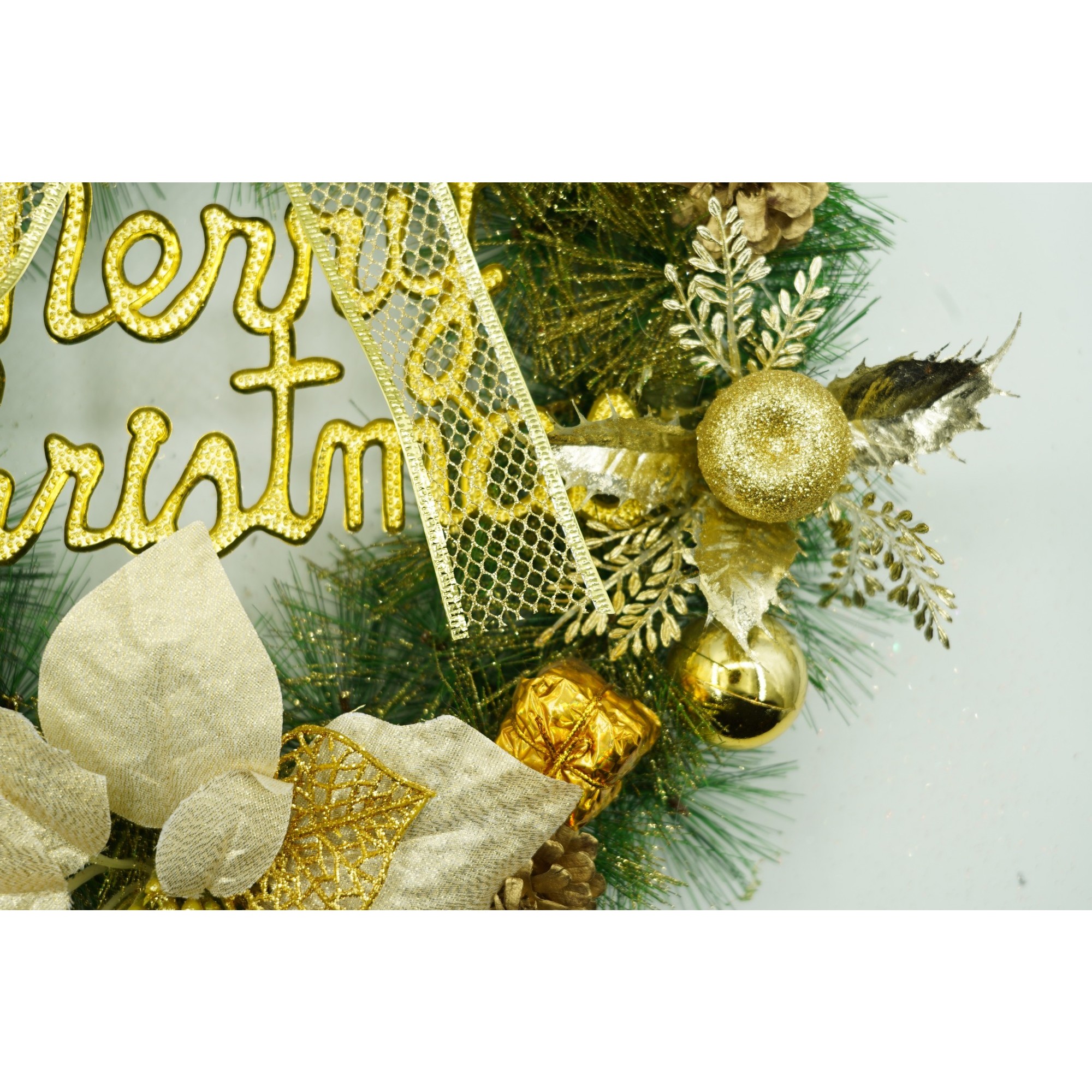 Cantitate Coronita de Craciun pentru usa, Verde-Auriu, 40 cm, PVC, Artificiala, Decorata, Interior/Exterior,
