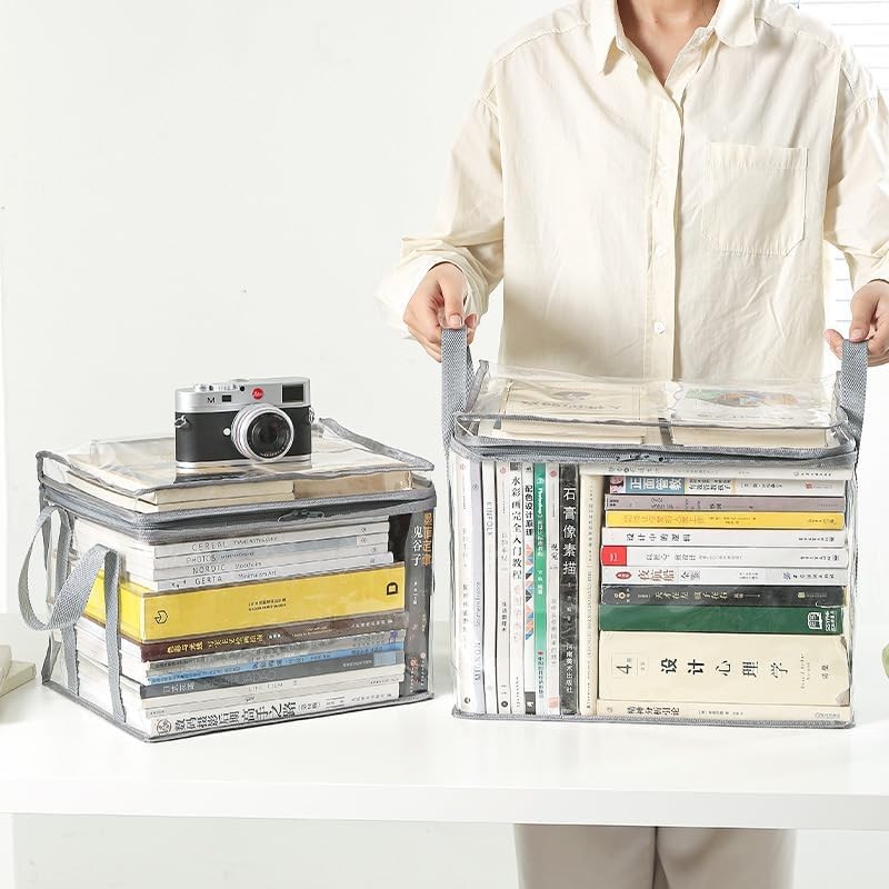 Cutie de Depozitare, Flippy, din PVC+Textil, Rezistentă la Apă, Geantă Multifuncțională pentru Cărți, 38x24x32 cm, Transparent-Alb