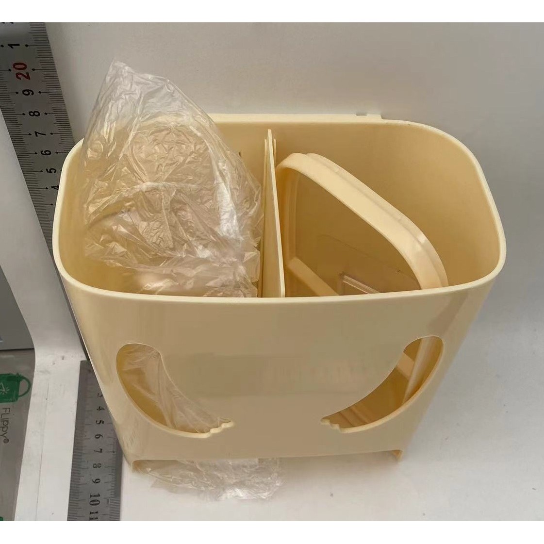 Cutie de Depozitare, Flippy, Montare Perete, Adeziv, Fara Perfoare, din ABS, Model Urs, 18 x 11 x 25 cm, Crem