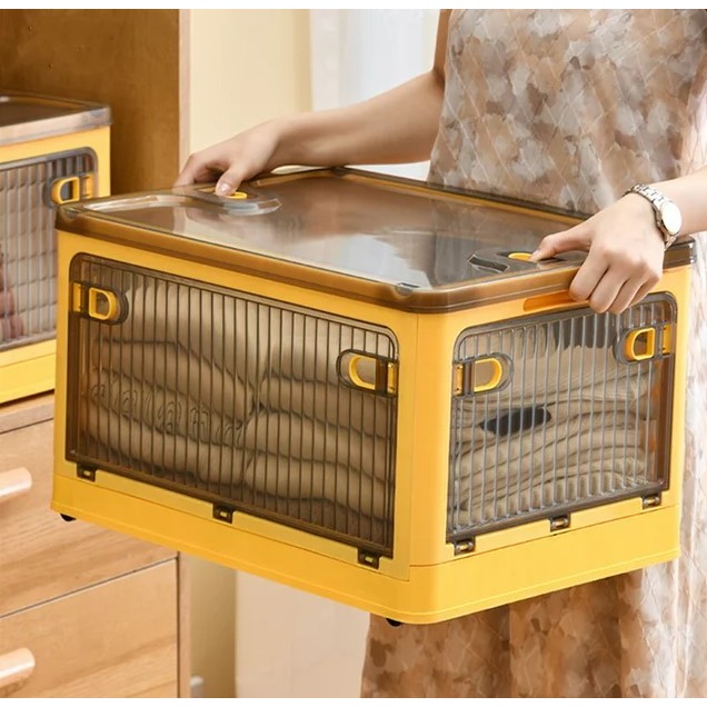 Cutia de depozitare este pliabila si este din plastic durabil