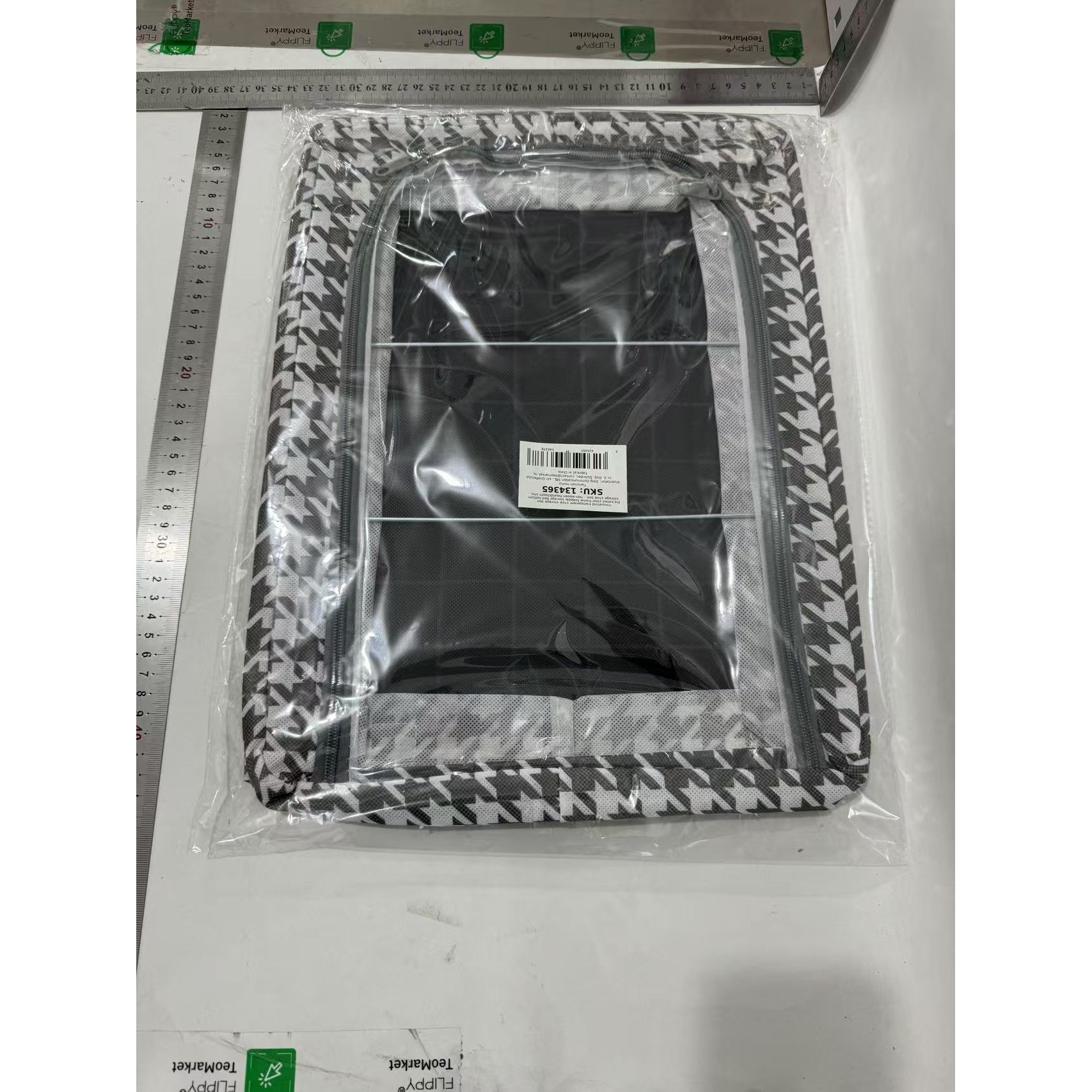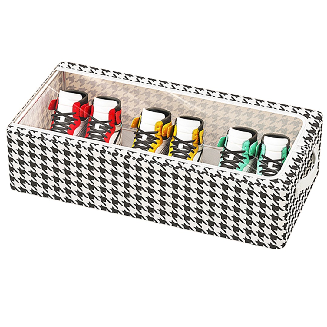 Cutie Depozitare cu Cadru Metalic, Flippy, pentru Incaltaminte, Haine, Lingerie, Fermoar Calitativ, Fereastra Transparenta, Manere Laterale, 40 x 30 x 15 cm, Alb Negru