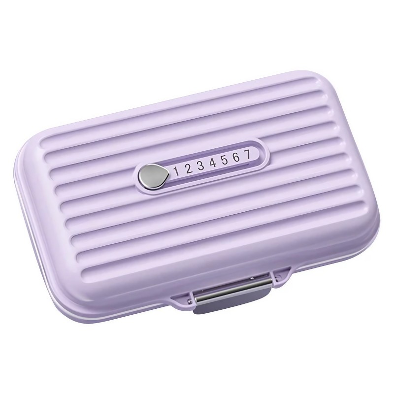 Cu un format compact si ergonomic, de doar 11 x 7.2 x 3.5 cm, cutia se strecoara cu usurinta in orice geanta, rucsac sau buzunar mai larg. Culoarea mov pastel ii confera un aer discret si rafinat, facand-o usor de recunoscut, dar fara a atrage atentia in mod excesiv.