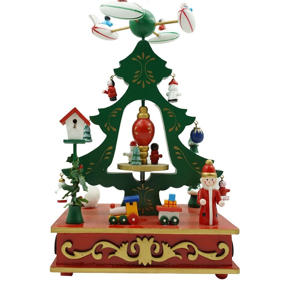 Cutiuta muzicala decorata de Craciun, Brad, Verde, din Lemn, 17 cm x 27 cm, Interior, Flippy