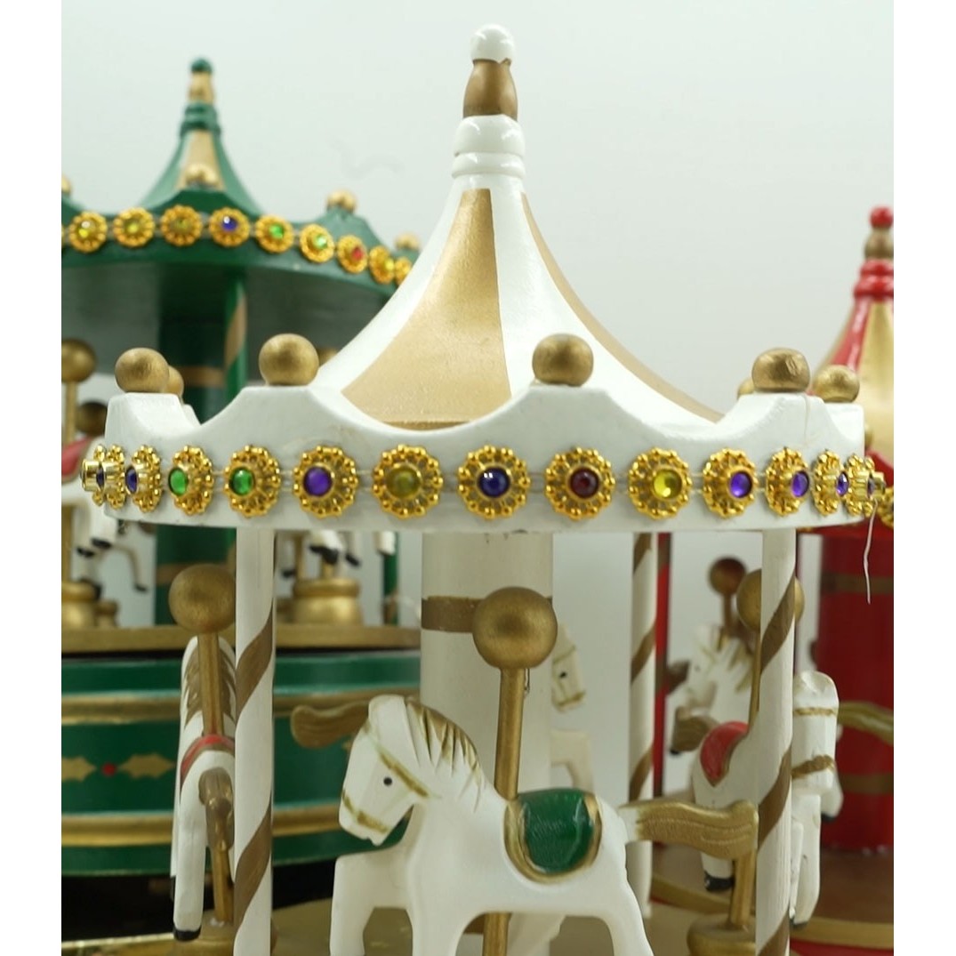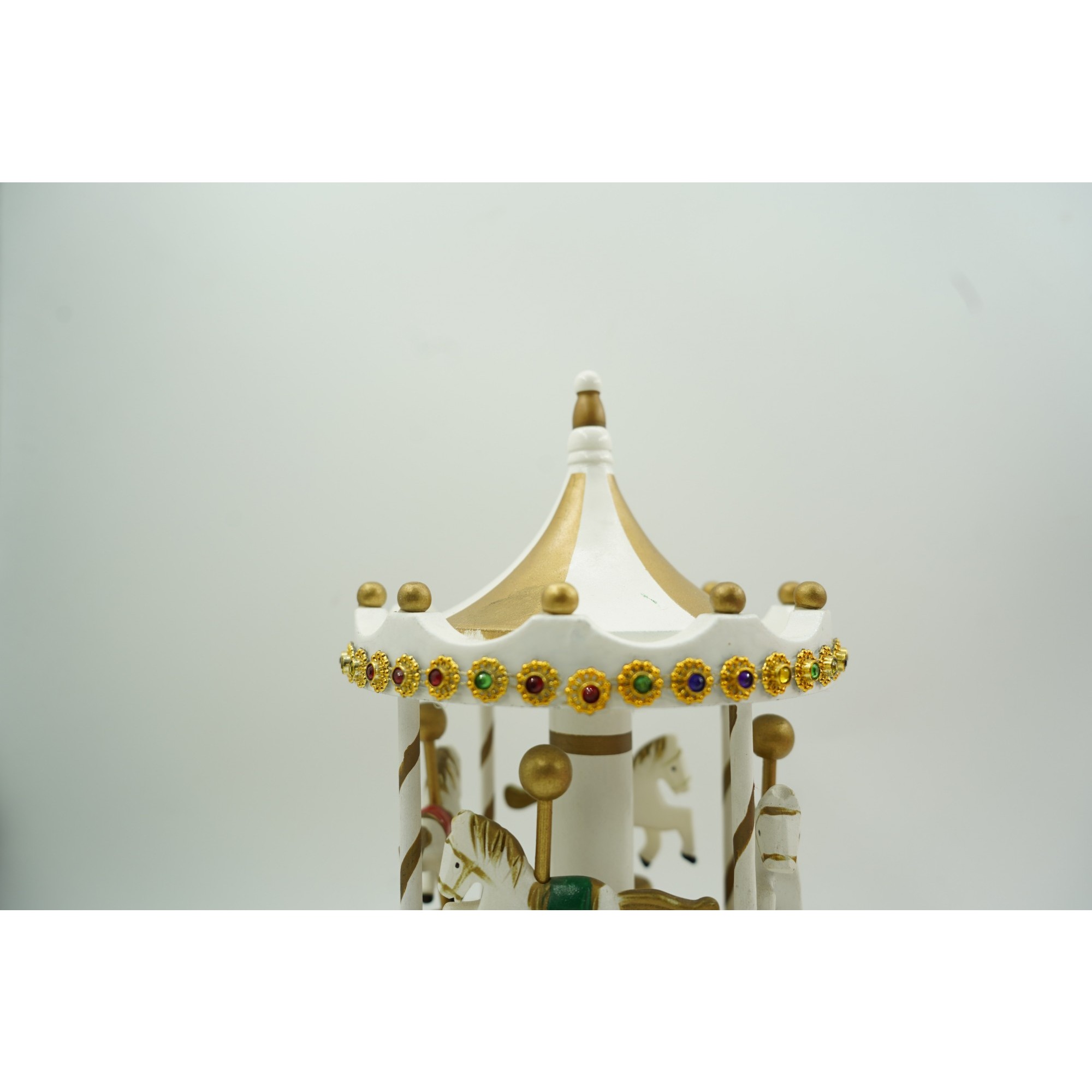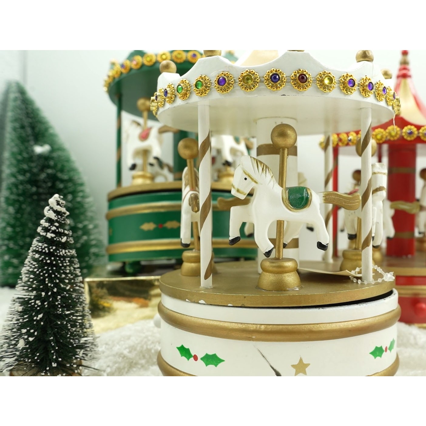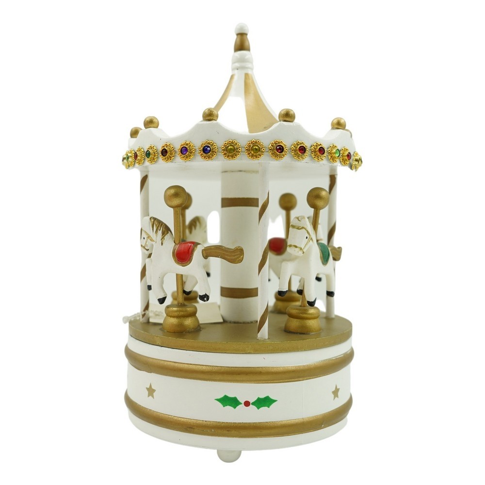 Cutiuta muzicala decorata de Craciun, Carusel rotativ, Alb, din Lemn, Interior, Flippy
