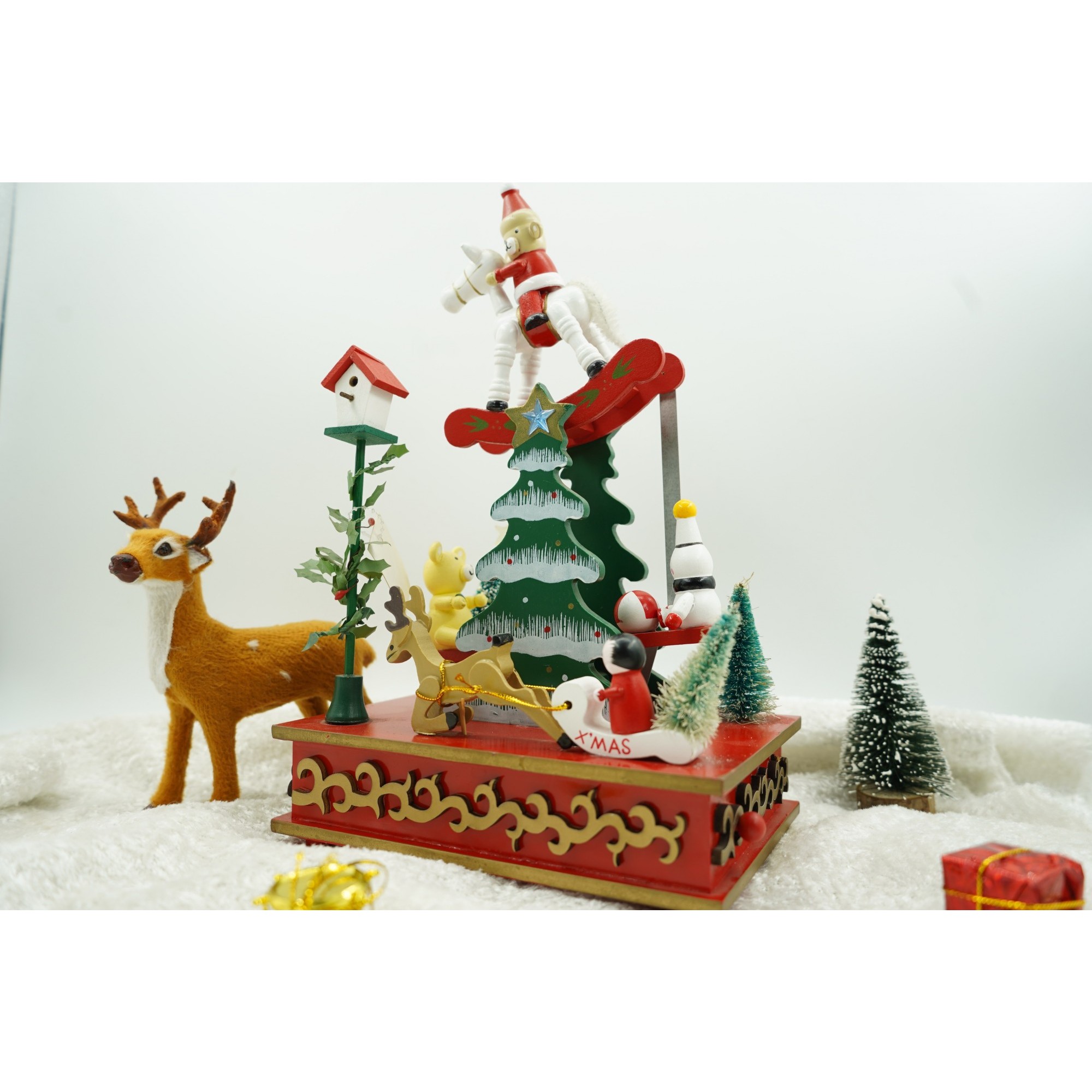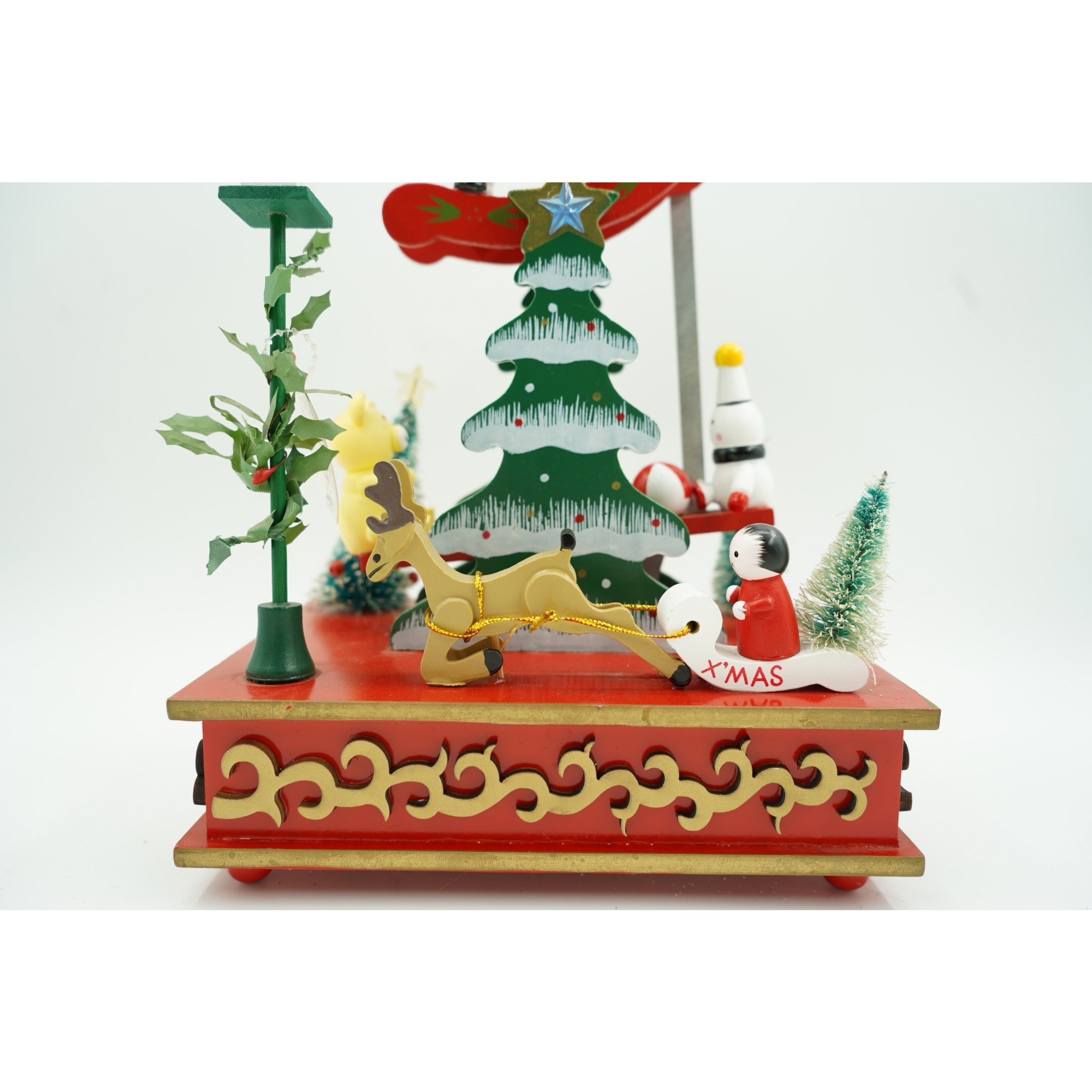 Cutiuta muzicala decorata de Craciun, Multicolor, din Lemn, 17 cm x 27.5 cm, Interior,