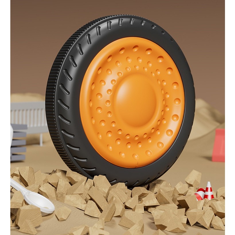 - Ideal pentru joacă în curte sau pe terenuri mai puțin plane, datorită roților rezistente și bratului funcțional.