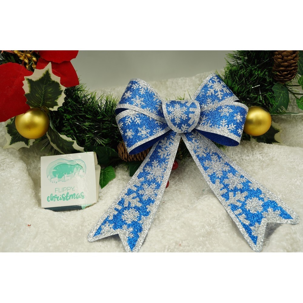Cantitate Funda pentru brad, Albastra, model de nea, cu margini argintii, 15 x 23 cm, PVC, Flippy