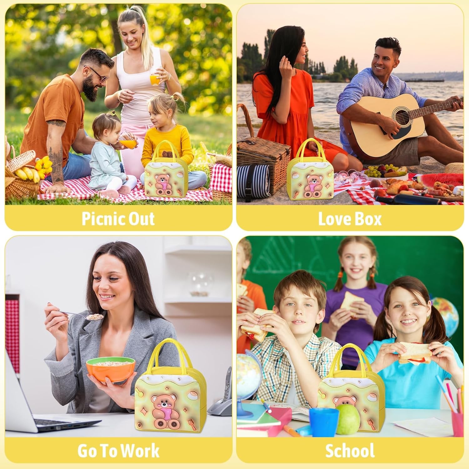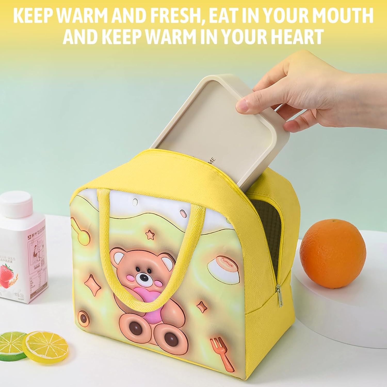 Geantă Frigorifică, Flippy, cu Desene Animate 3D, Portabilă pentru Copii, de Prânz, din Pânză Oxford, 23x13x19 cm, Model Ursulet, Galben