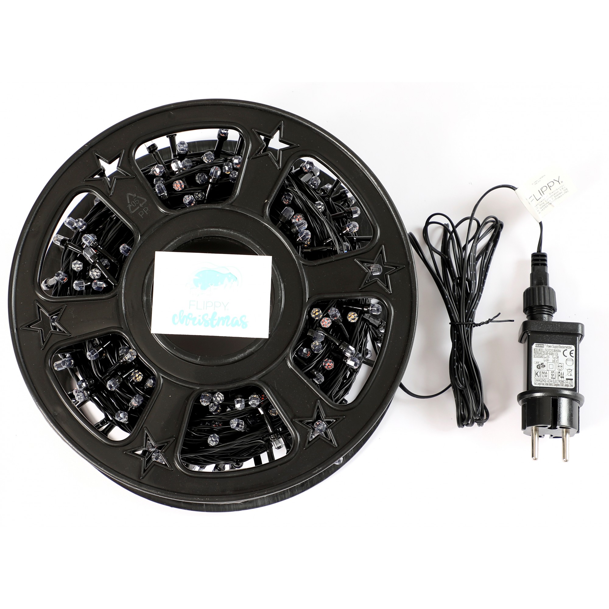 Instalatie Craciun liniara, fir negru, cu transformator, 50m, multicolor, 500 LED-uri, 8 jocuri de lumini, Flippy