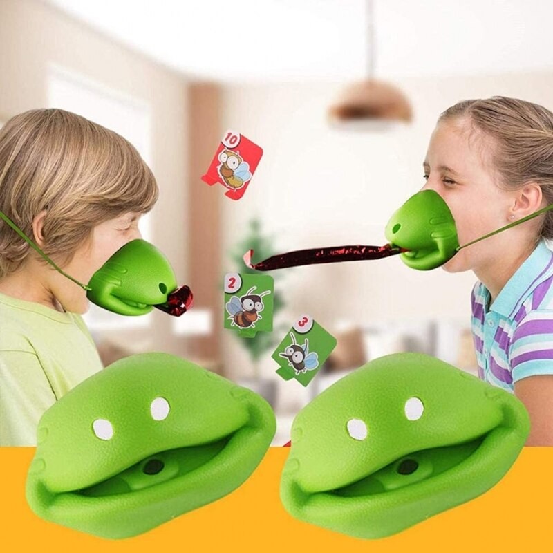 Jucătorii poartă măștile de cameleon și folosesc limbile speciale pentru a prinde cardurile de pe masă. Fiecare carte câștigată înseamnă un pas mai aproape de victorie! Ideal pentru 2 jucători, acest joc aduce râsete și distracție în familie sau la petrecerile copiilor.