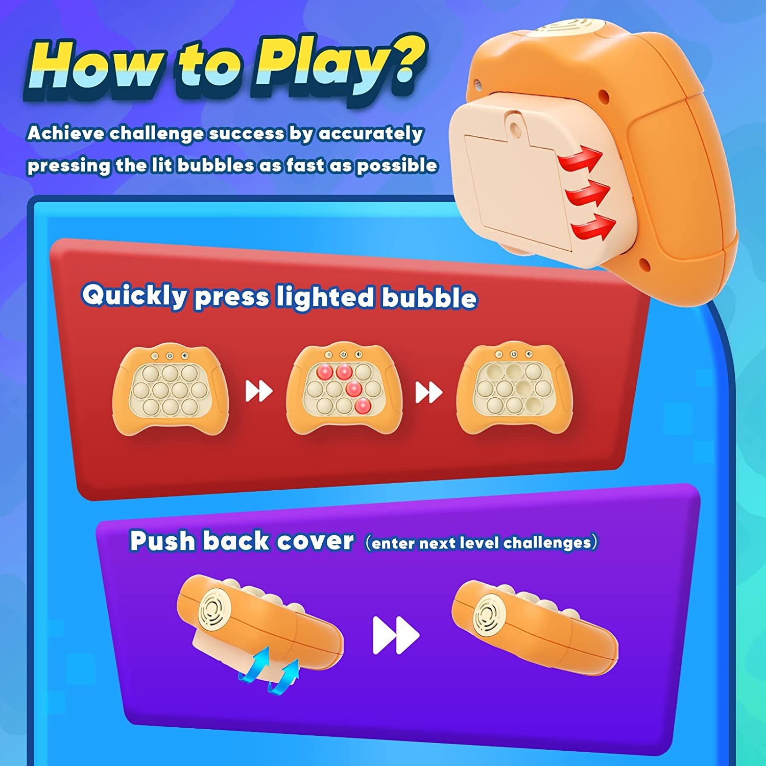 Joc Pop It, Flippy, consola, joc interactiv, antistres, cu baterii, Abs si silicon, Portocaliu, 12 x 10 x 5.8 cm