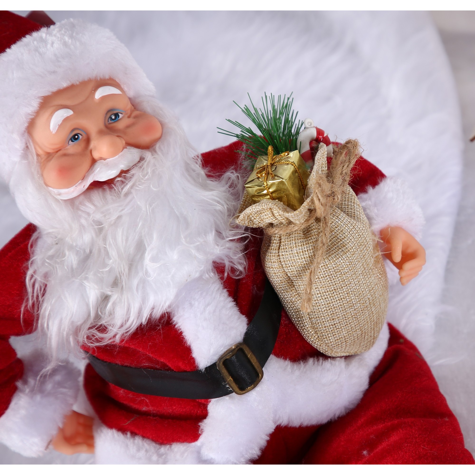 Jucarie decorativa, , Mos Craciun, 55 cm x 23 cm, grosime 25 cm, lana, tesatura de plus, poliester, interior/exterior