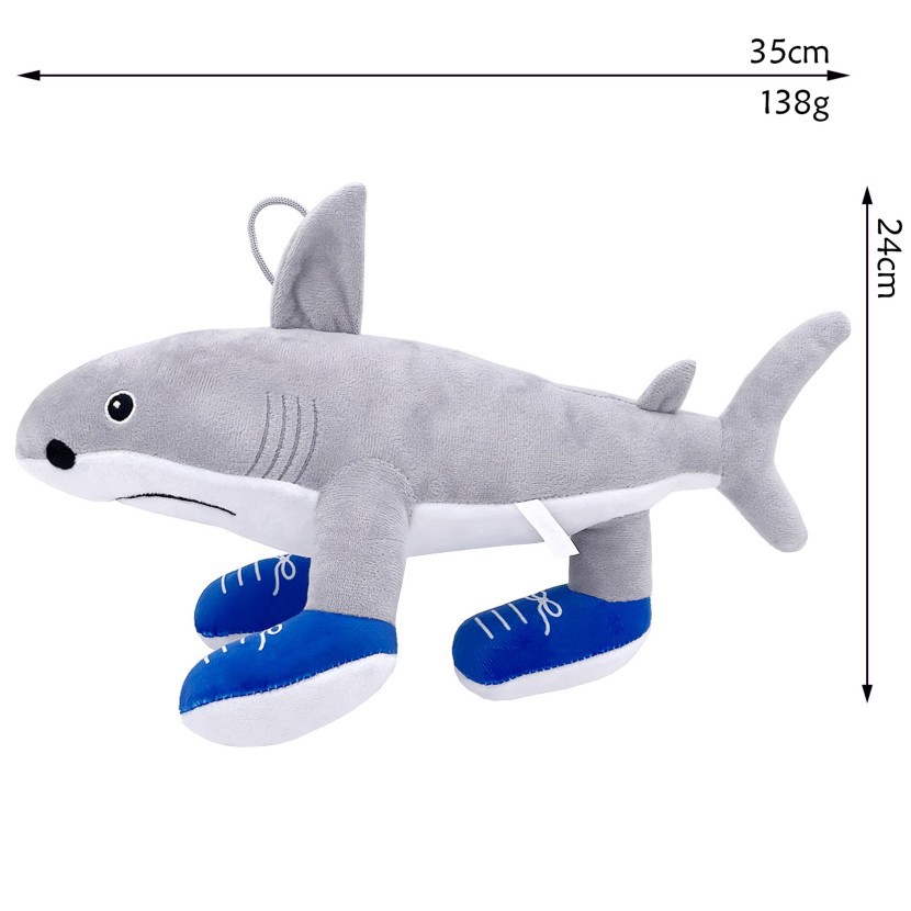 Forma de Rechin cu Picioare Tralalero Tralala cu detalii amuzante si o sfoara elastica in partea de sus, ideala pentru agatare
