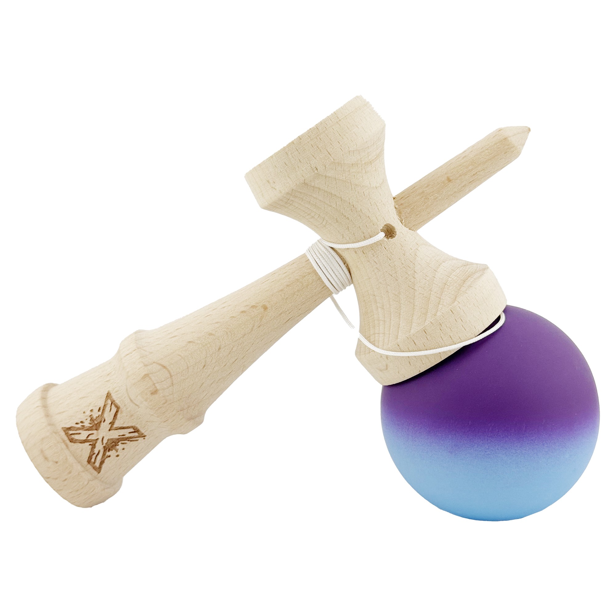 Kendama X Originala, Profesionala, Flippy, Big Cups V2, Rubber Grip cu Cupe Mari, Rulment Metalic cu Ata 55 cm, Gradient Mov/ Albastru