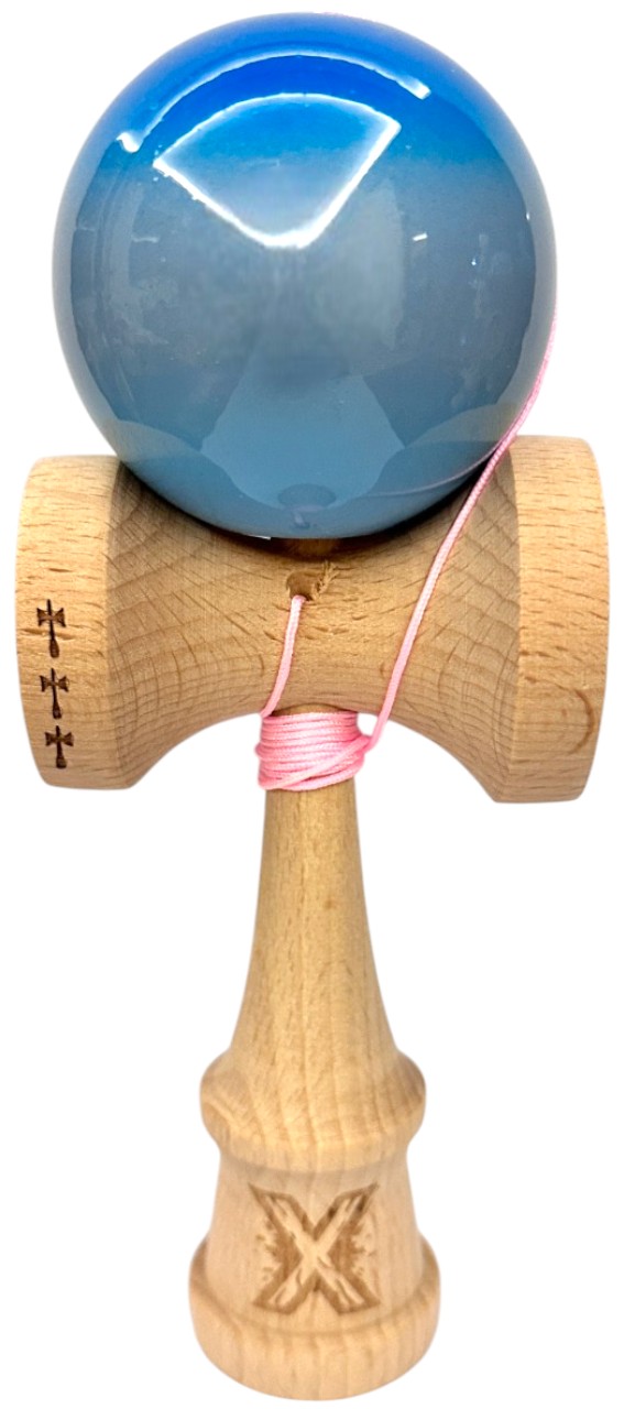 Kendama X Originala, Profesionala, Flippy Big Cups V2, Super Sticky din Lemn, 18 cm, Gradient Albastru/Gri/Bleu
