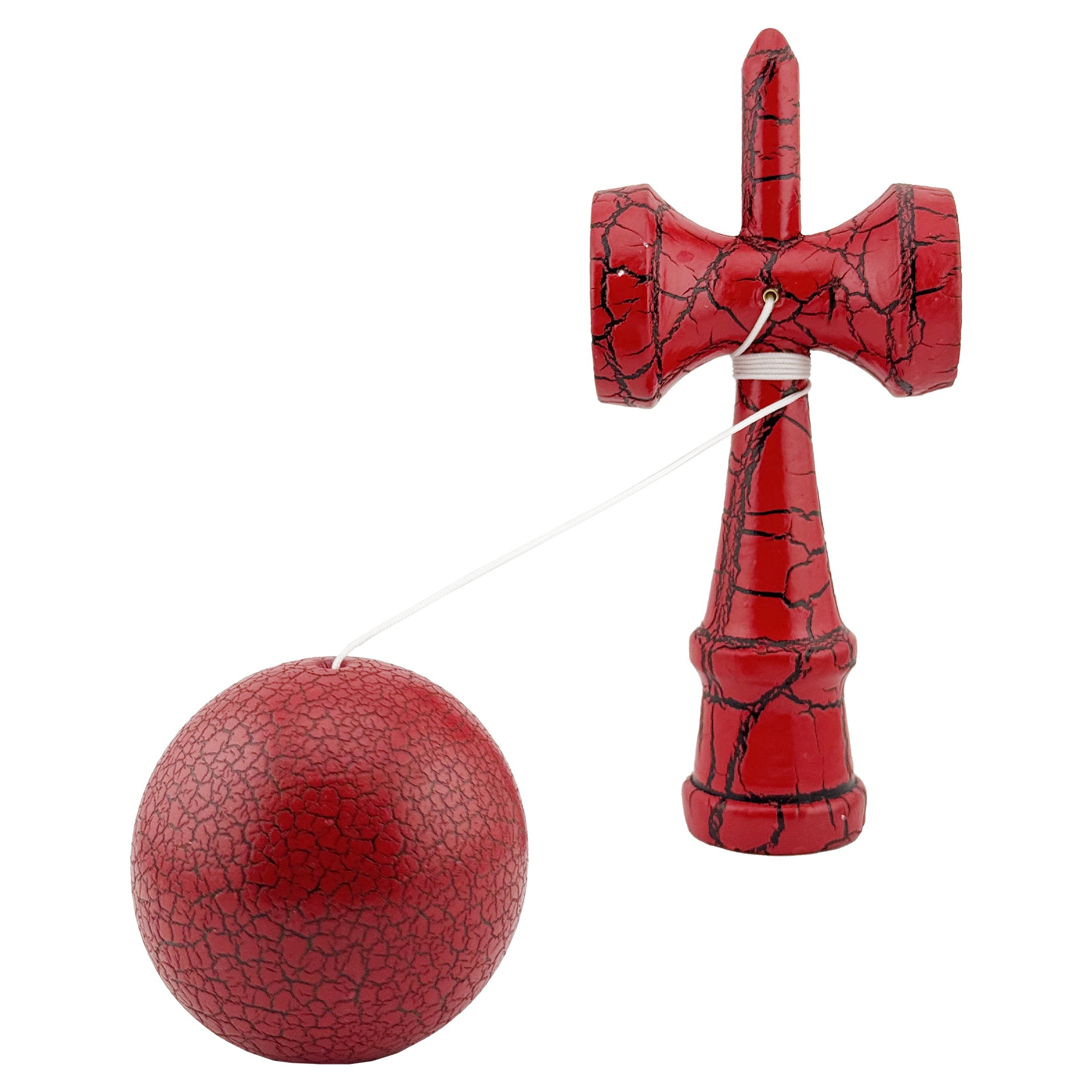 Kendama X Originala, Profesionala, Flippy, Kendama Cracked, din Lemn, 18 cm, Rosu/Negru