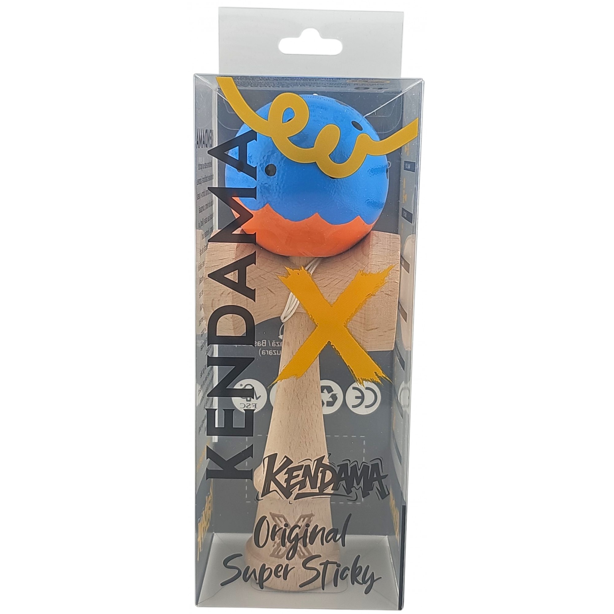 Kendama X Originala, Profesionala Limited, Flippy, din Lemn, Super Sticky, 18 cm, Albastru/Portocaliu