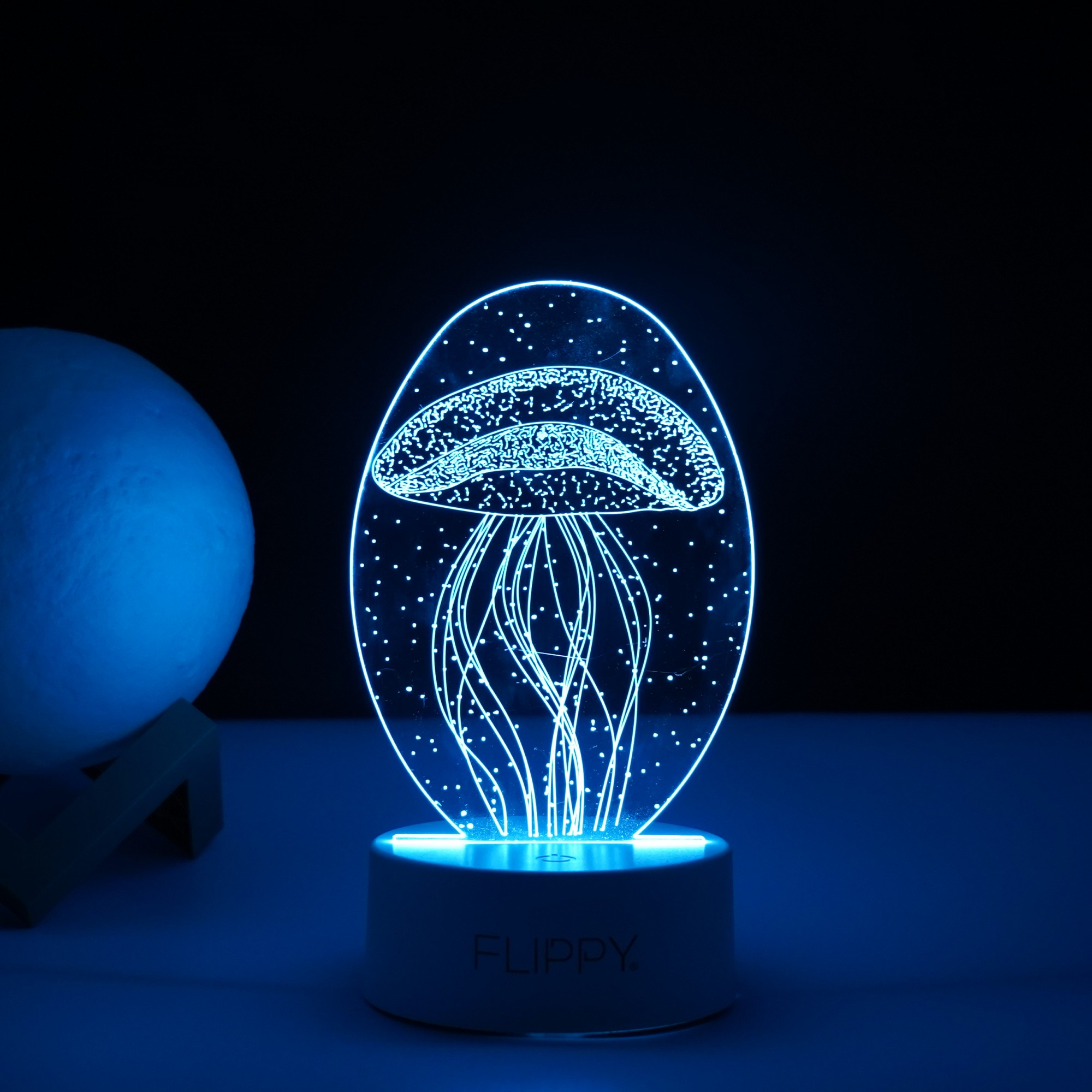 Lampa LED decorativa, , 3D, Meduza, din material acril si lumina multicolora, alb