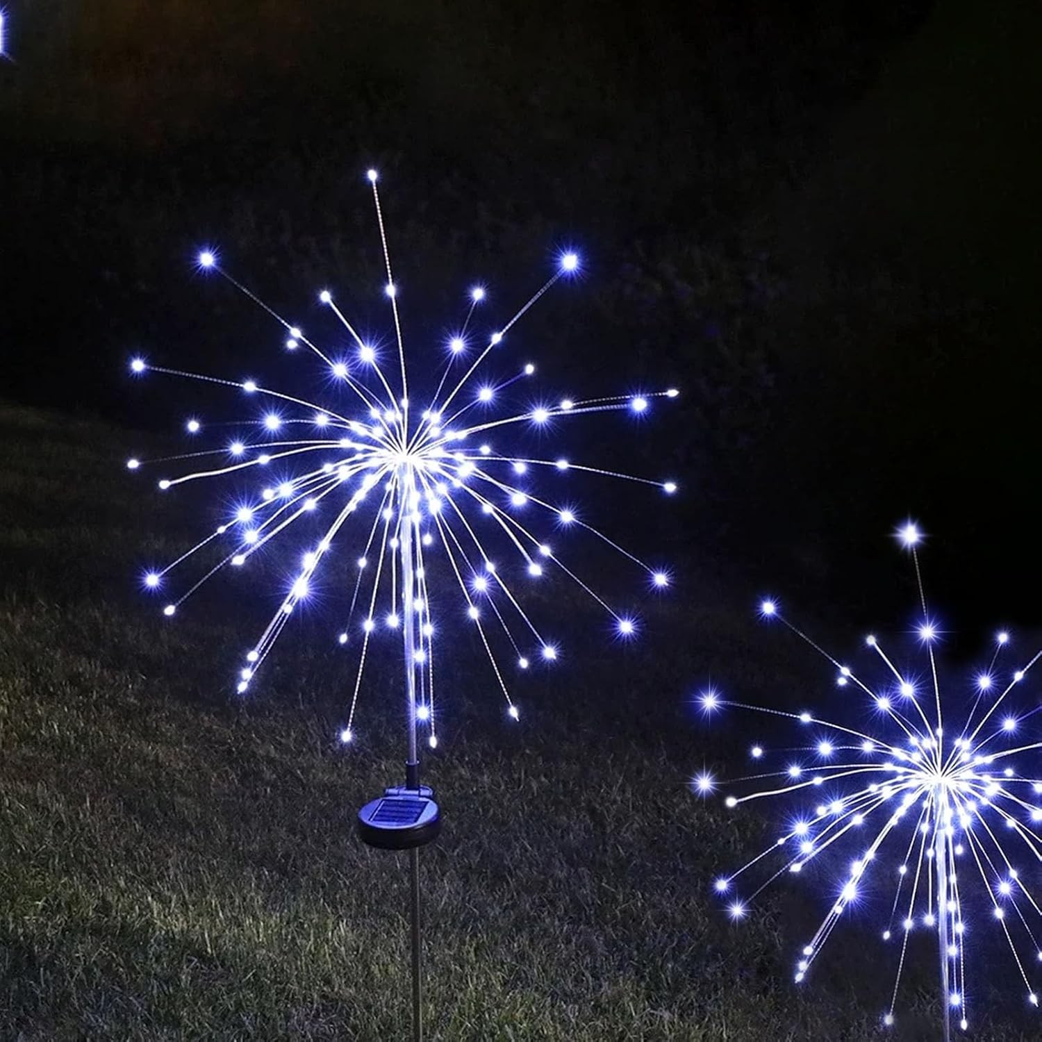 Lampă Solară, Flippy®, Decor Grădină, Model Fireworks/Artificii, din Sârmă de Cupru, 120 LED-uri, 55W, 90 cm, Alb Rece