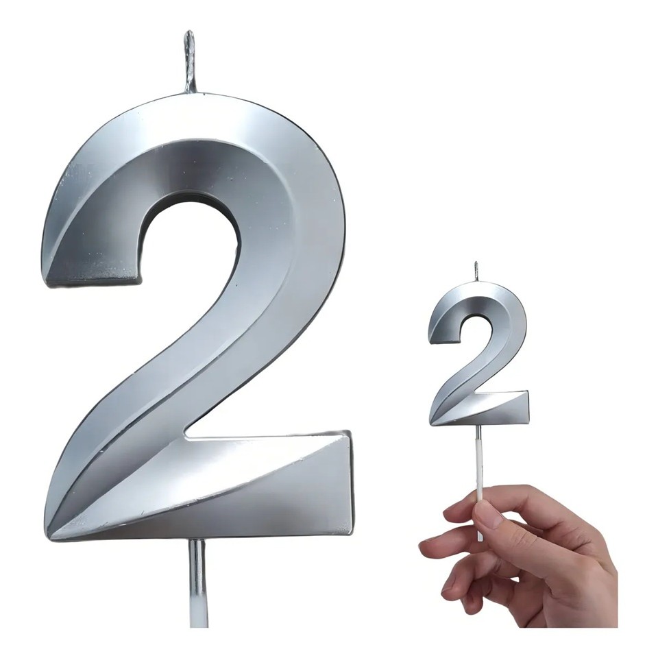 Lumânare Cifră 2, Flippy®, Model Diamond, 5 x 3.4 cm, Argintiu
