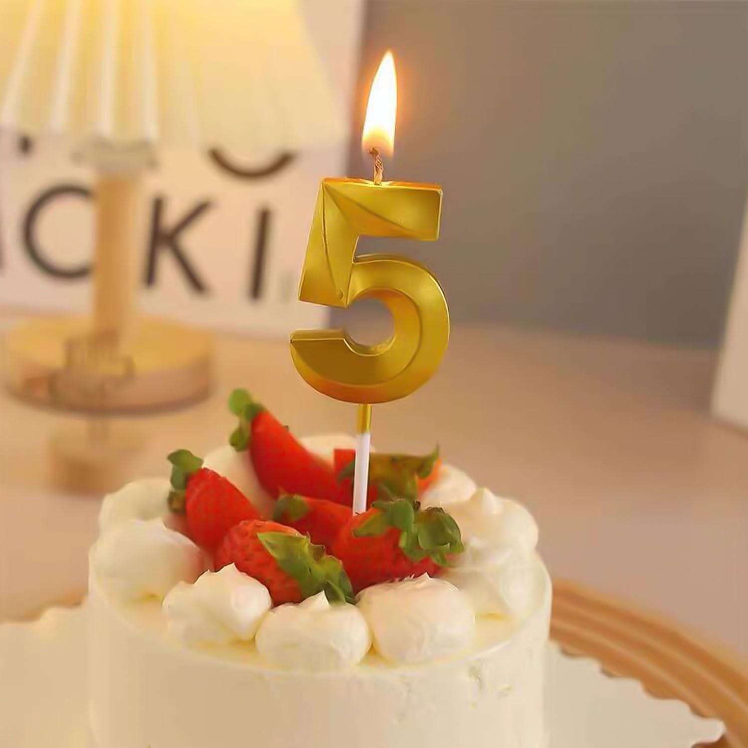 Lumânare Cifră 5, Flippy®, Model Diamond, 5 x 3.4 cm, Auriu