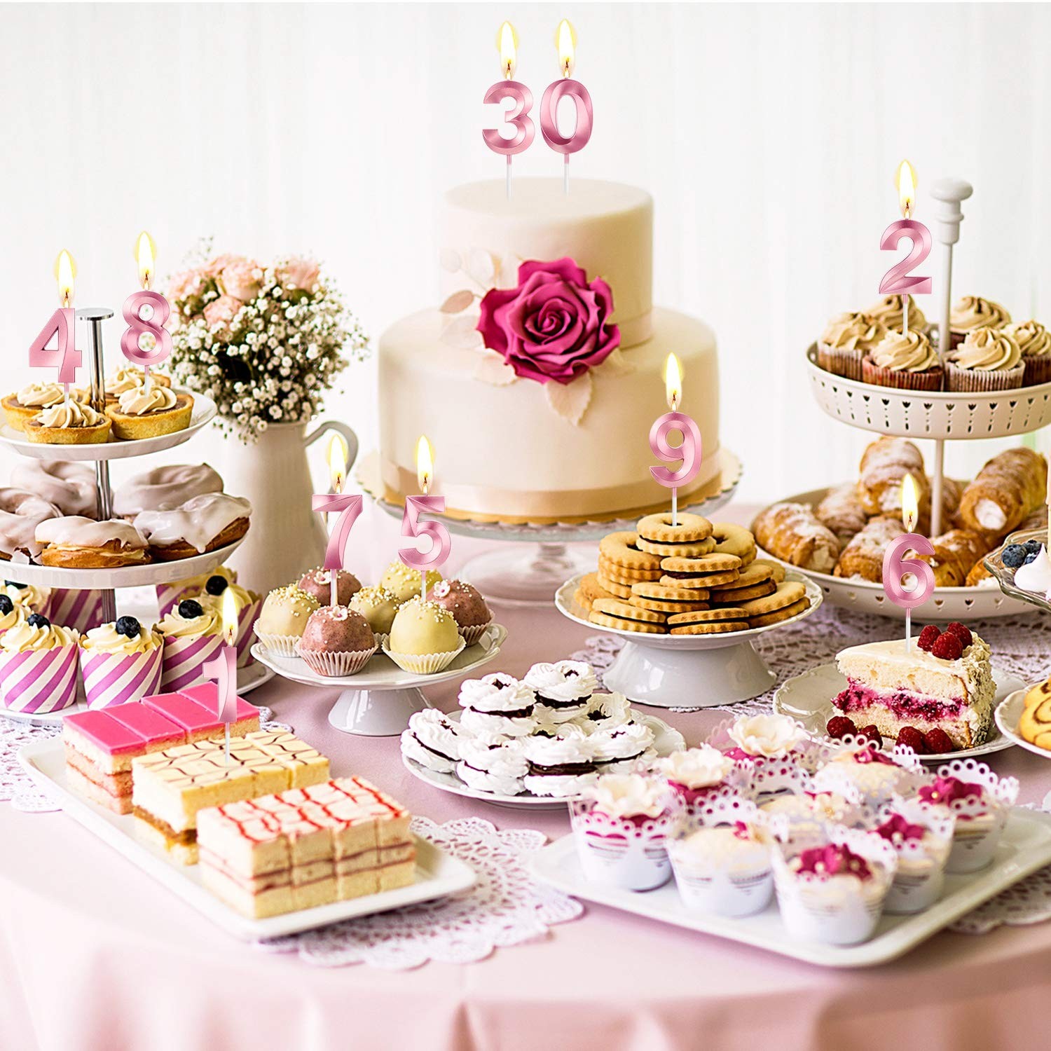 Lumânare Cifră 5, Flippy®, Model Diamond, 5 x 3.4 cm, Roz