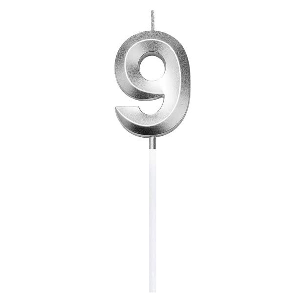 Lumânare Cifră 9, Flippy®, Model Diamond, 5 x 3.4 cm, Argintiu