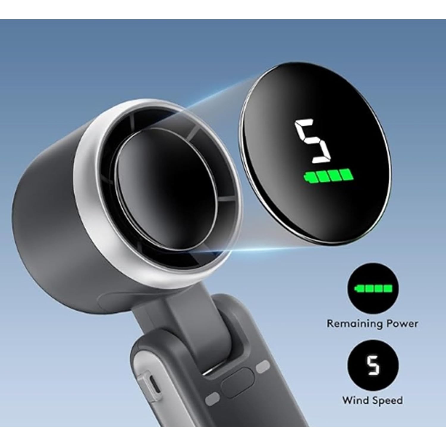 Mini Ventilator Portabil Flippy, 5 Trepte, Afișaj Digital HD, Încărcare USB Type-C, 180° Reglabil, 5.95 x 5.2 x 17.2 cm, Negru