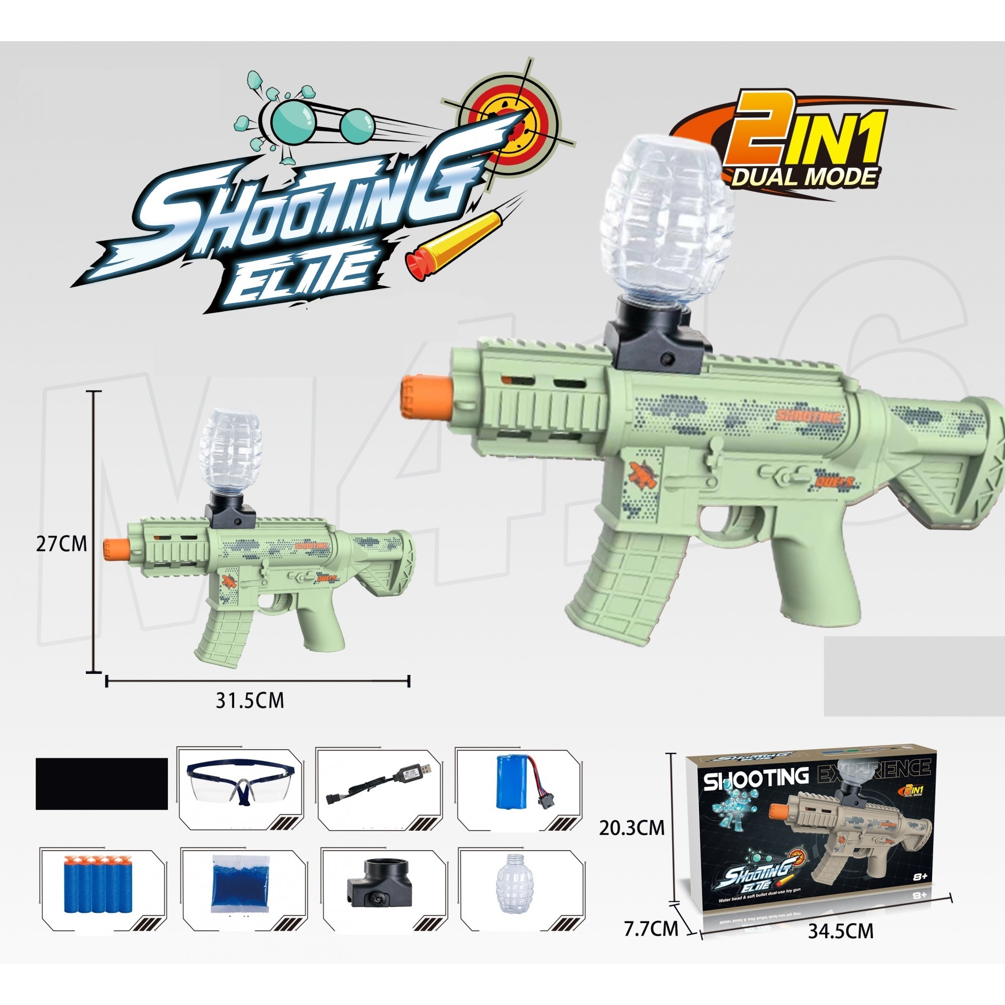 Pistol electric Flippy 2 in 1 cu bile de hidrogen de gel si sageti cu ventuze de spuma, ochelari de protectie, 5000 de bile incluse, cablu de incarcare, 27×31.5 cm, Mp9, verde