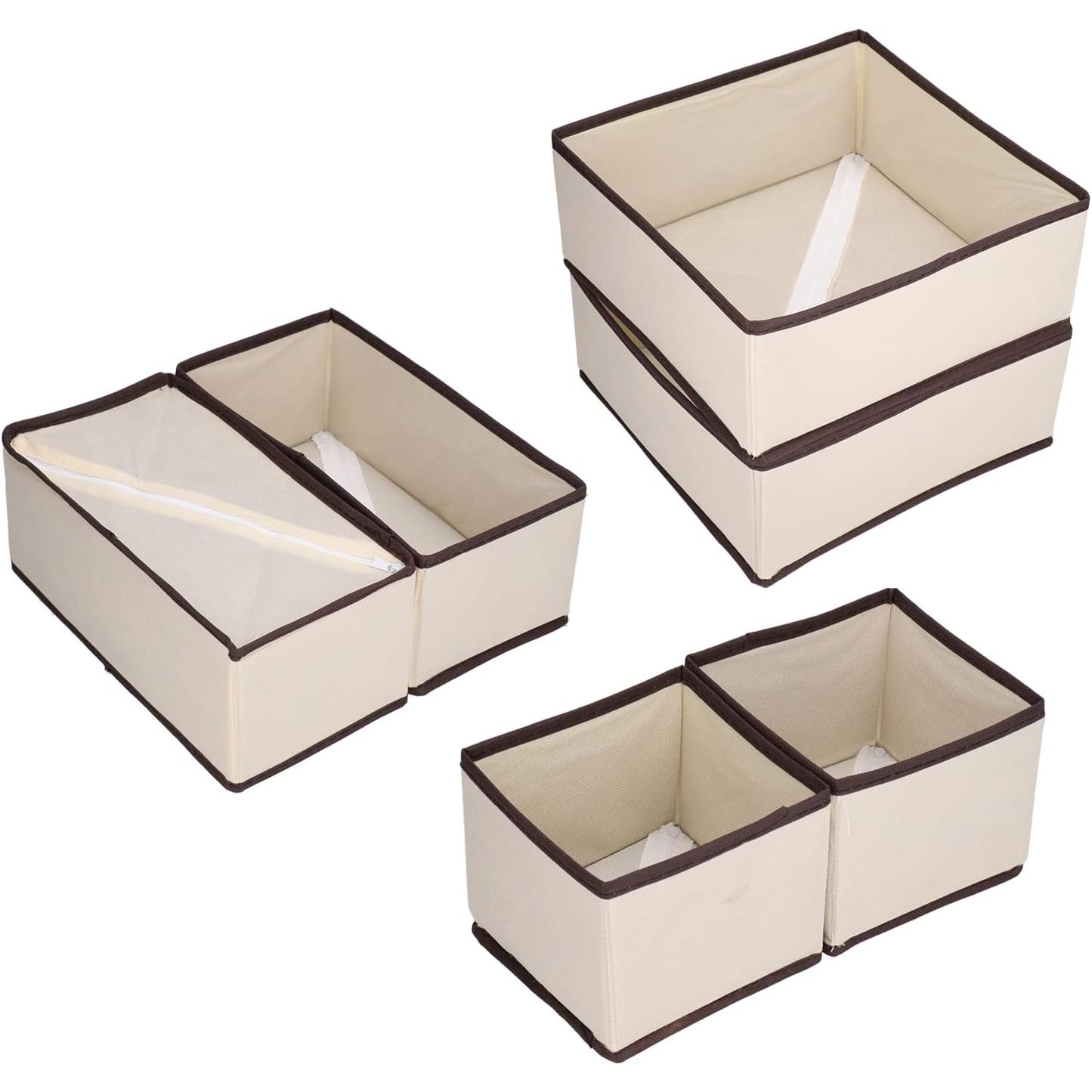 Organizator pentru Sertar, Flippy, 3 Mărimi, pentru Lenjerie, Tricouri, Șosete, Set 6 Piese, Pliabil, Stivuibil, din Țesătură