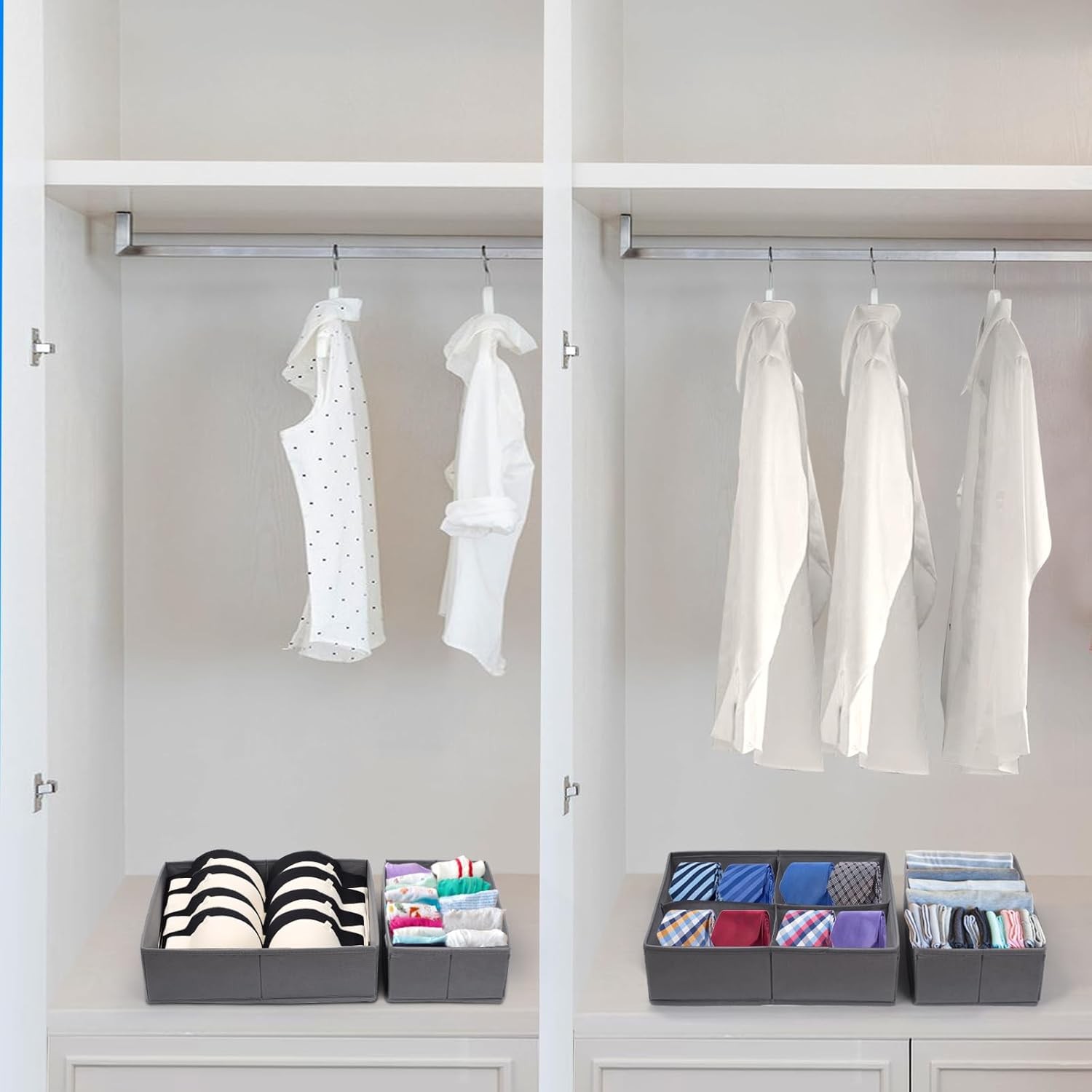 Organizator pentru Sertar, Flippy, 3 Mărimi, pentru Lenjerie, Tricouri, Șosete, Set 6 Piese, Pliabil, Stivuibil, din Țesătură