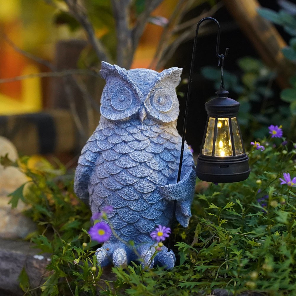 Bufnita tine in mana un felinar iluminat cu LED, care functioneaza pe baza de panou solar integrat. Acesta se incarca complet in 6-8 ore si ofera lumina automata pe timpul noptii timp de pana la 8 ore, economisind energie si fiind prietenos cu mediul. Decoratiunea este rezistenta la intemperii, ideala pentru gradini, terase, curti sau chiar ca ornament decorativ la intrarea in casa.